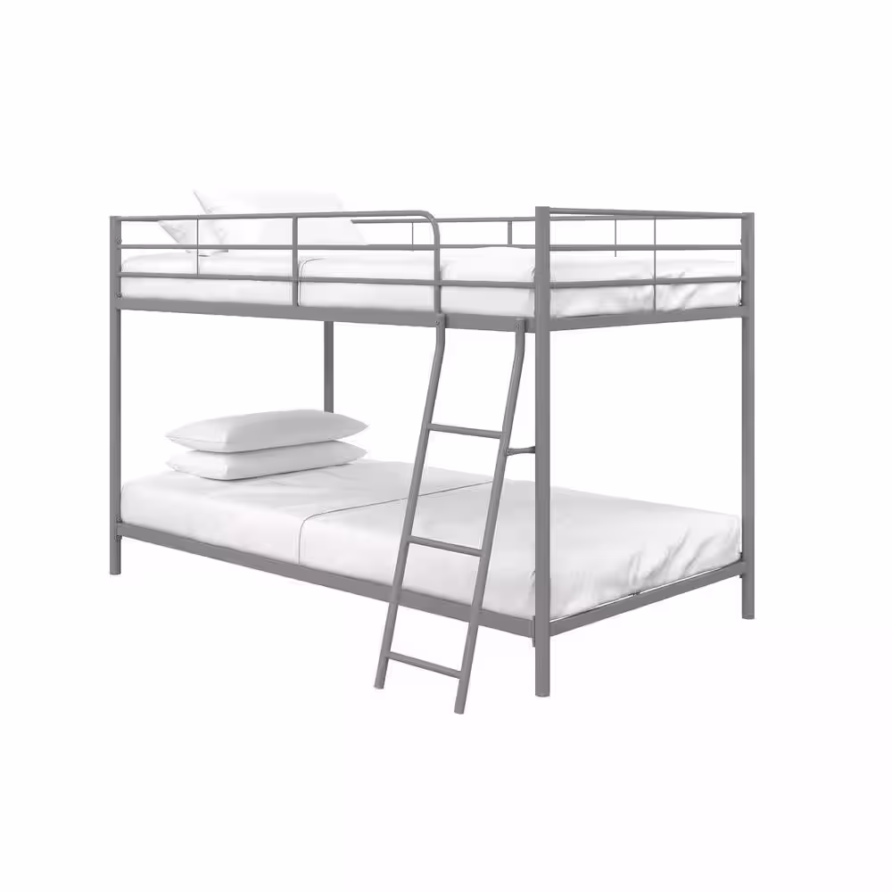 DHP Fulton Silver Metal Twin Over Twin Bunk Bed