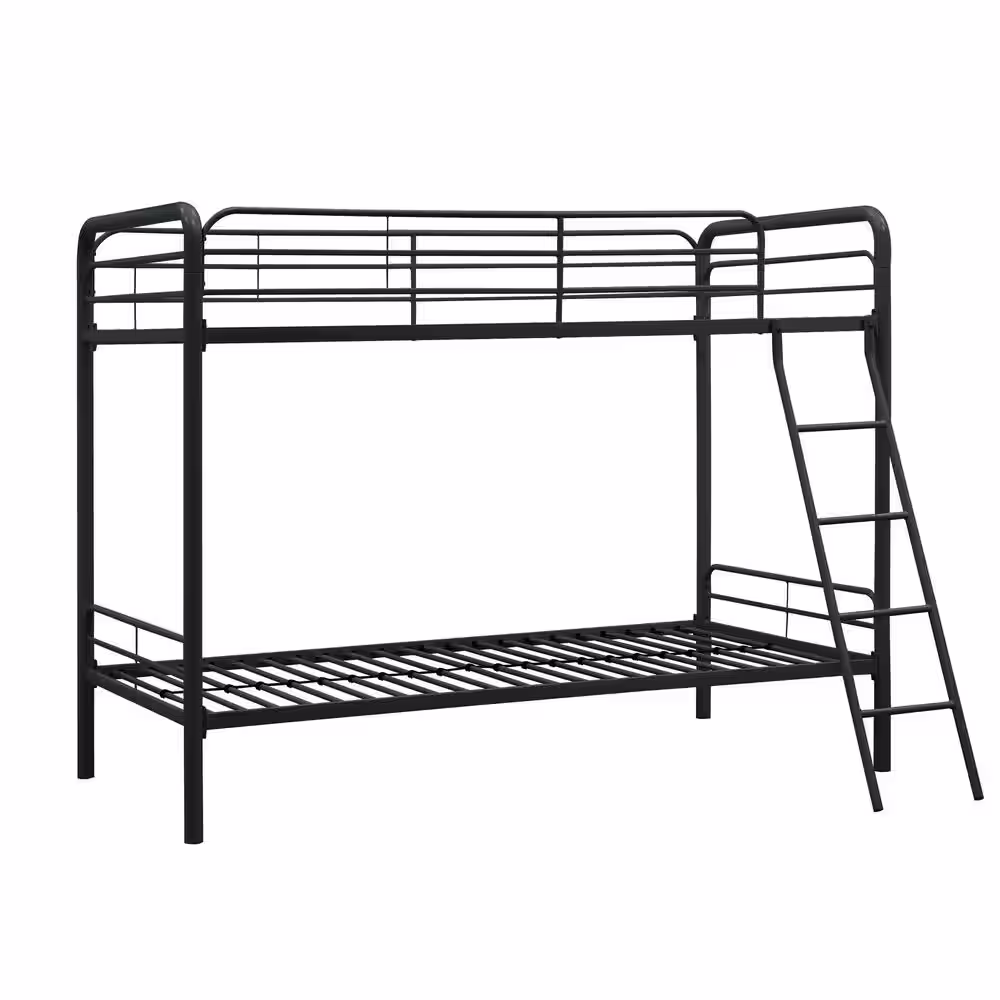 Harper & Bright Designs Black Twin Over Twin Metal Low Bunk Bed with Ladder