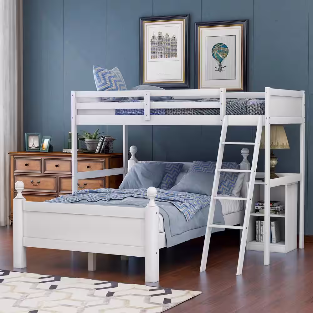 Harper & Bright Designs White Twin Over Full Loft Bed with Cabinet