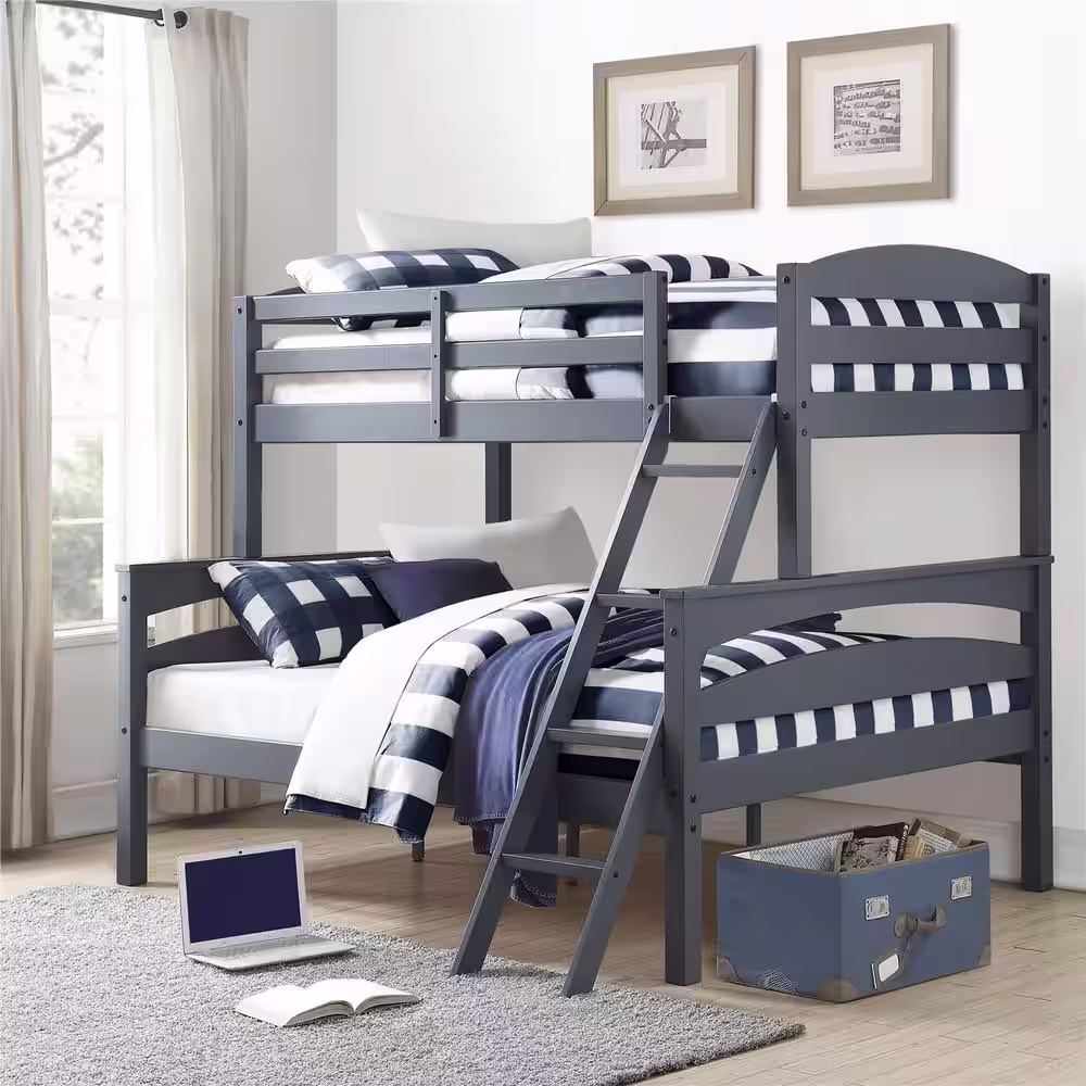 Dorel Living Brady Twin Over Full Gray Wood Bunk Bed