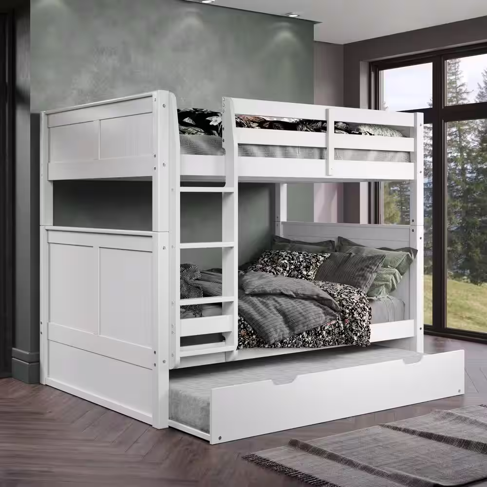 Camaflexi Panel White Full over Full Bunk Bed with Twin Trundle
