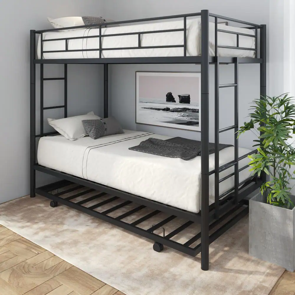Magic Home Black Twin Over Twin Bunk Bed With Trundle