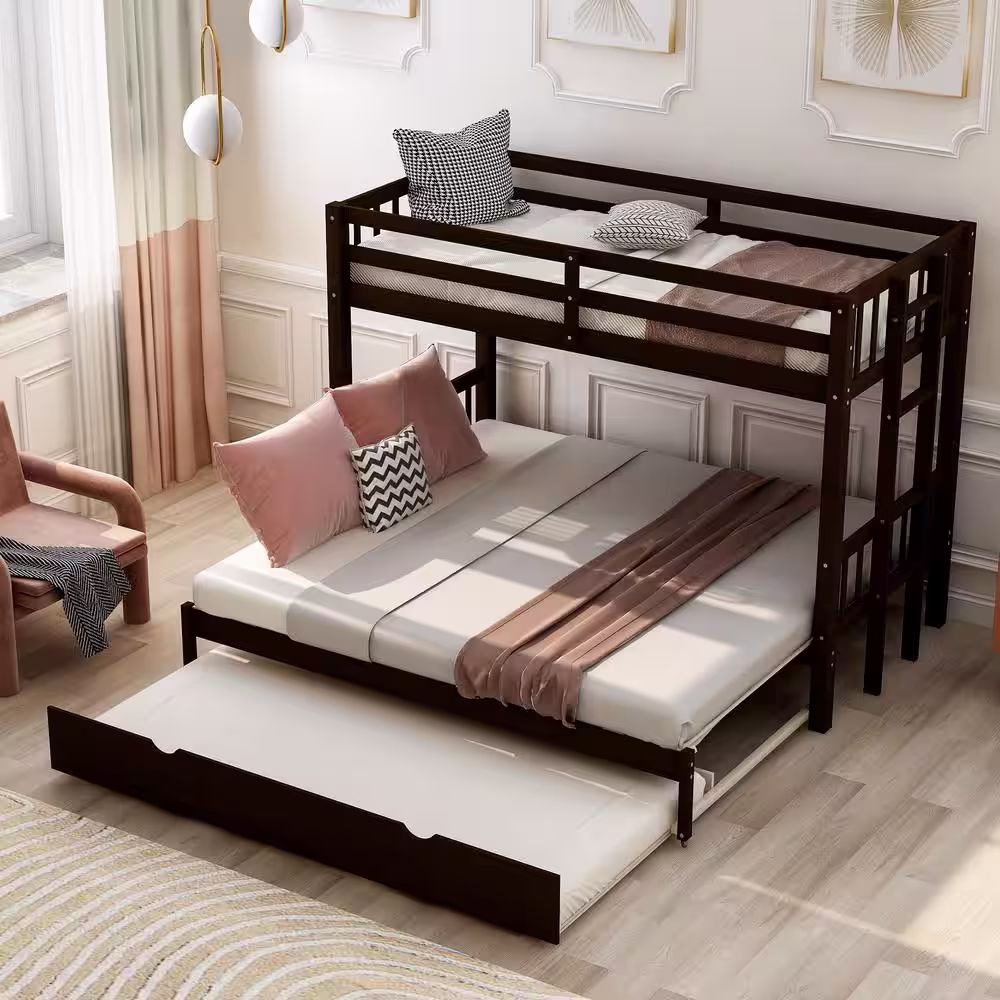 Harper & Bright Designs Espresso Twin Over Twin/King Bunk Bed with Trundle