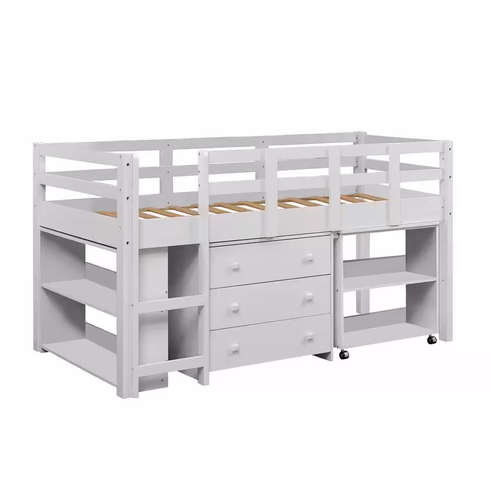 HOMESTOCK White Low Loft Bed Twin Loft Bed with Desk Kids Beds for Boy Solid Pine Wood Toddler Bed