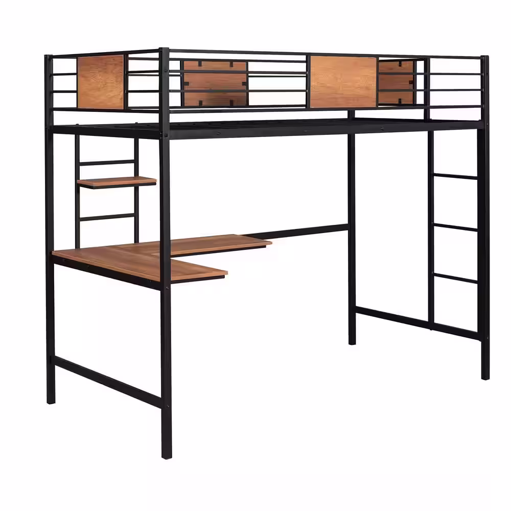 Harper & Bright Designs Black Metal Twin Size Loft Bed with Shelves and Desk