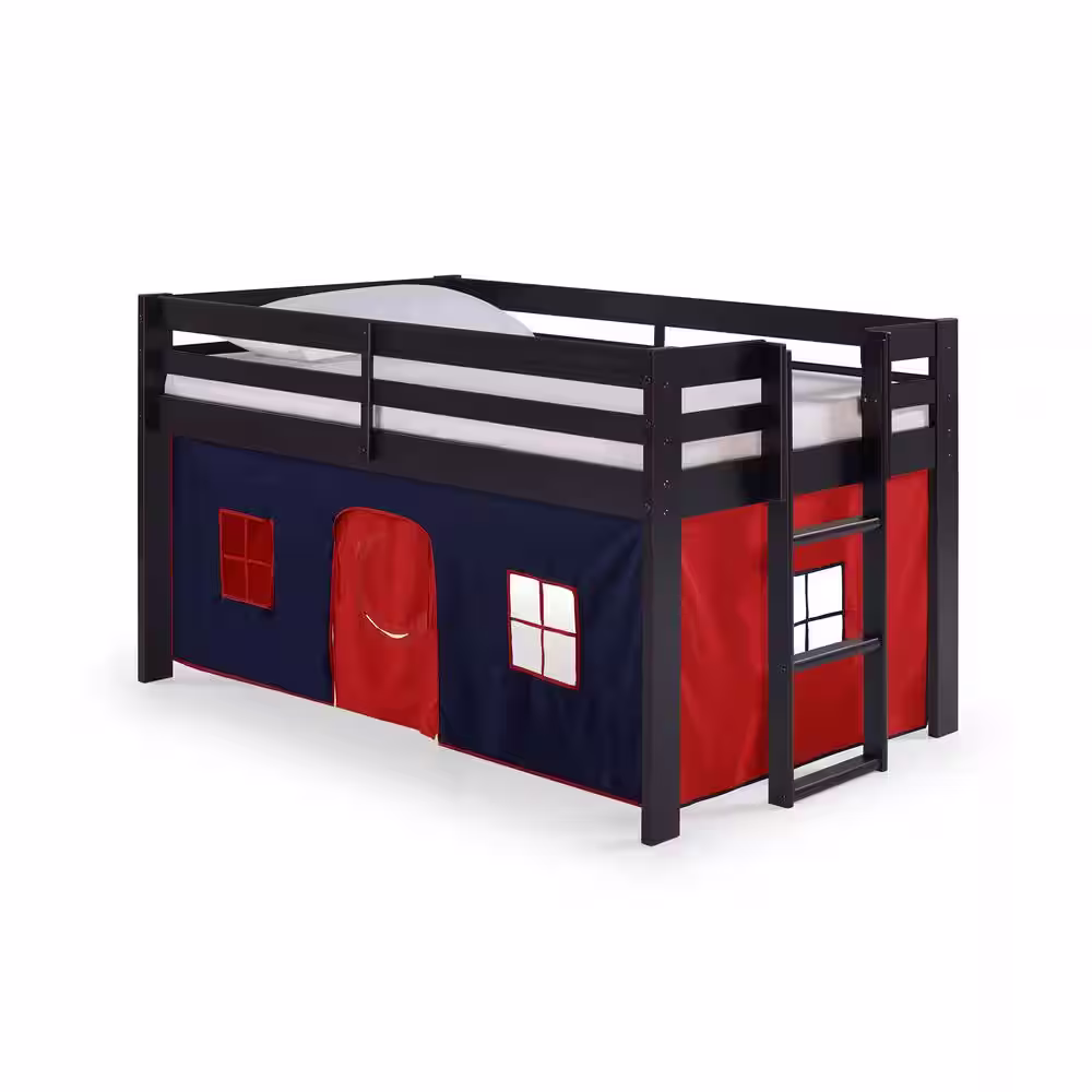 Alaterre Furniture Jasper Espresso with Blue/Red Playhouse Tent Twin Junior Loft Bed