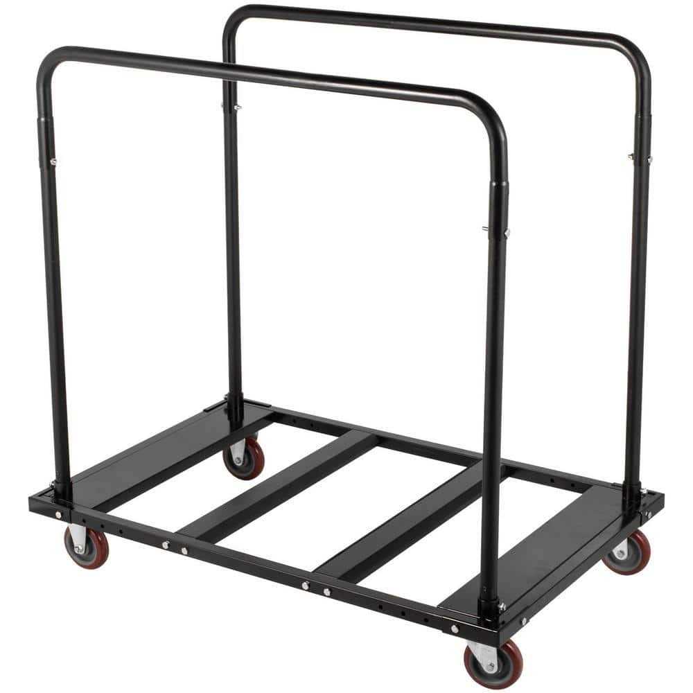 VEVOR Folding Table Cart Black Table Rack for 60 in. Round Tables Heavy Duty Table Trolley Black Desk Kitchen Cart Steel Frame