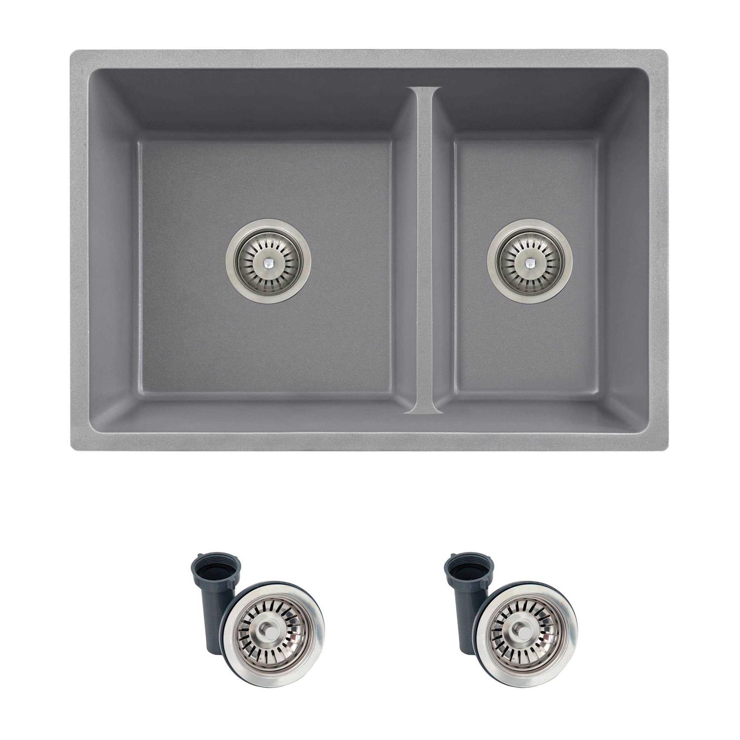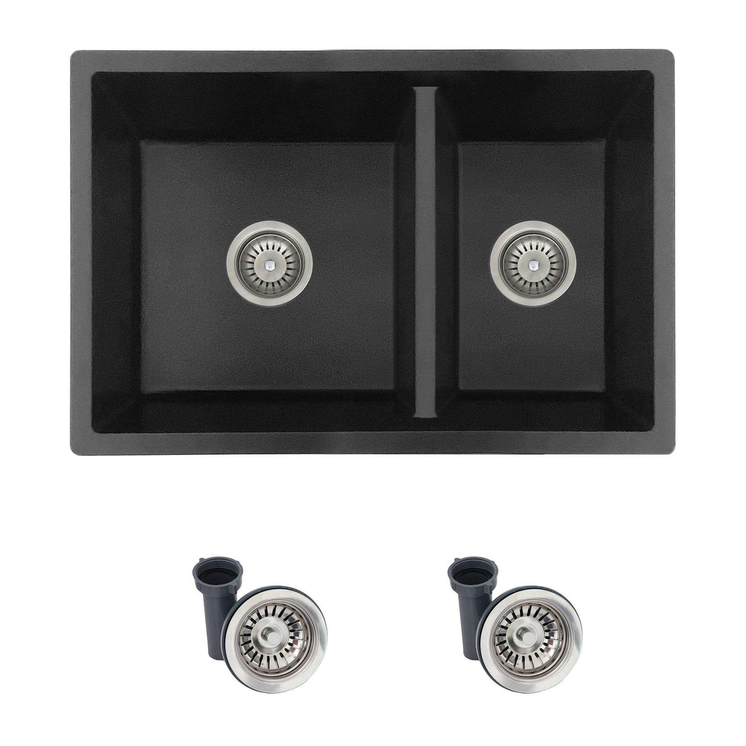 Stylish 27 inch Dual Mount 60/40 Double Bowl Composite Granite Kitchen Sink with Strainer