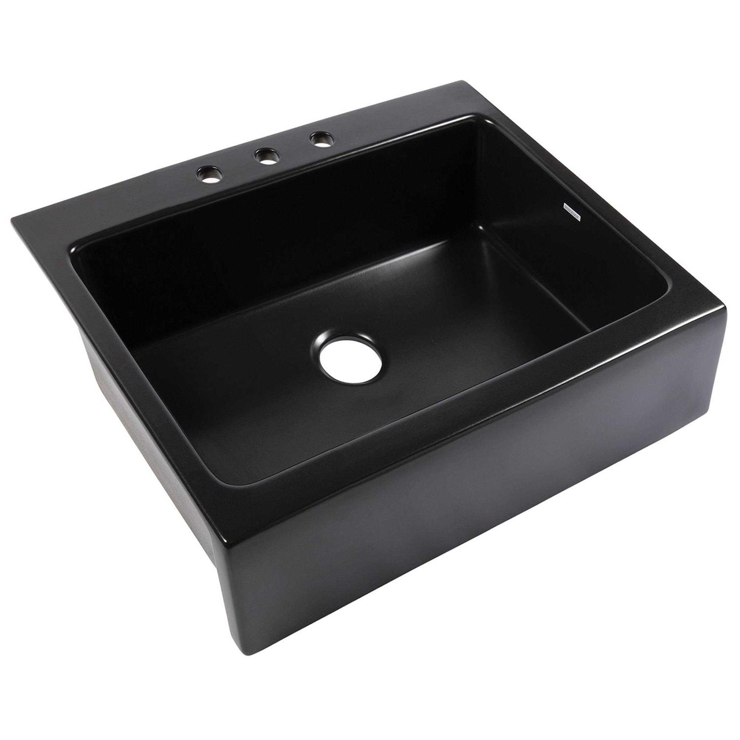 Sinkology SK450-34FC-MB-SS Parker Black Fireclay 34 Single Bowl Drop-In Farmhouse Kitchen Sink and Drain