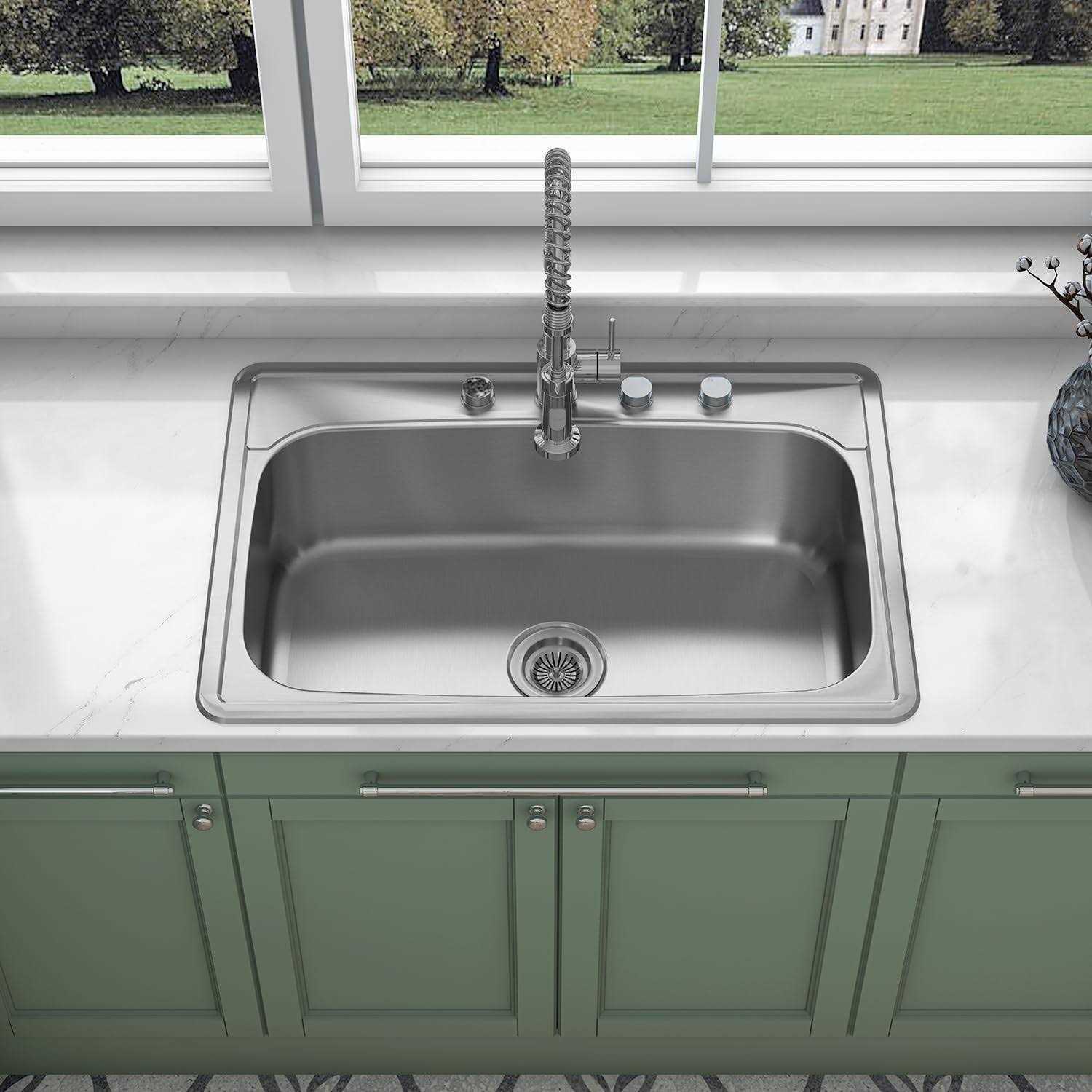 Sinber MT3322CW 33 x 22 Drop In Single Bowl Kitchen Sink with 18 Gauge 304 Stainless Steel Satin Finish