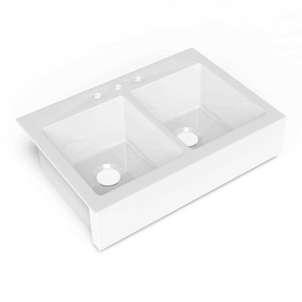 SINKOLOGY Josephine 34 in. 3-Hole Quick-Fit Drop-In Farmhouse Double Bowl Crisp White Fireclay Kitchen Sink