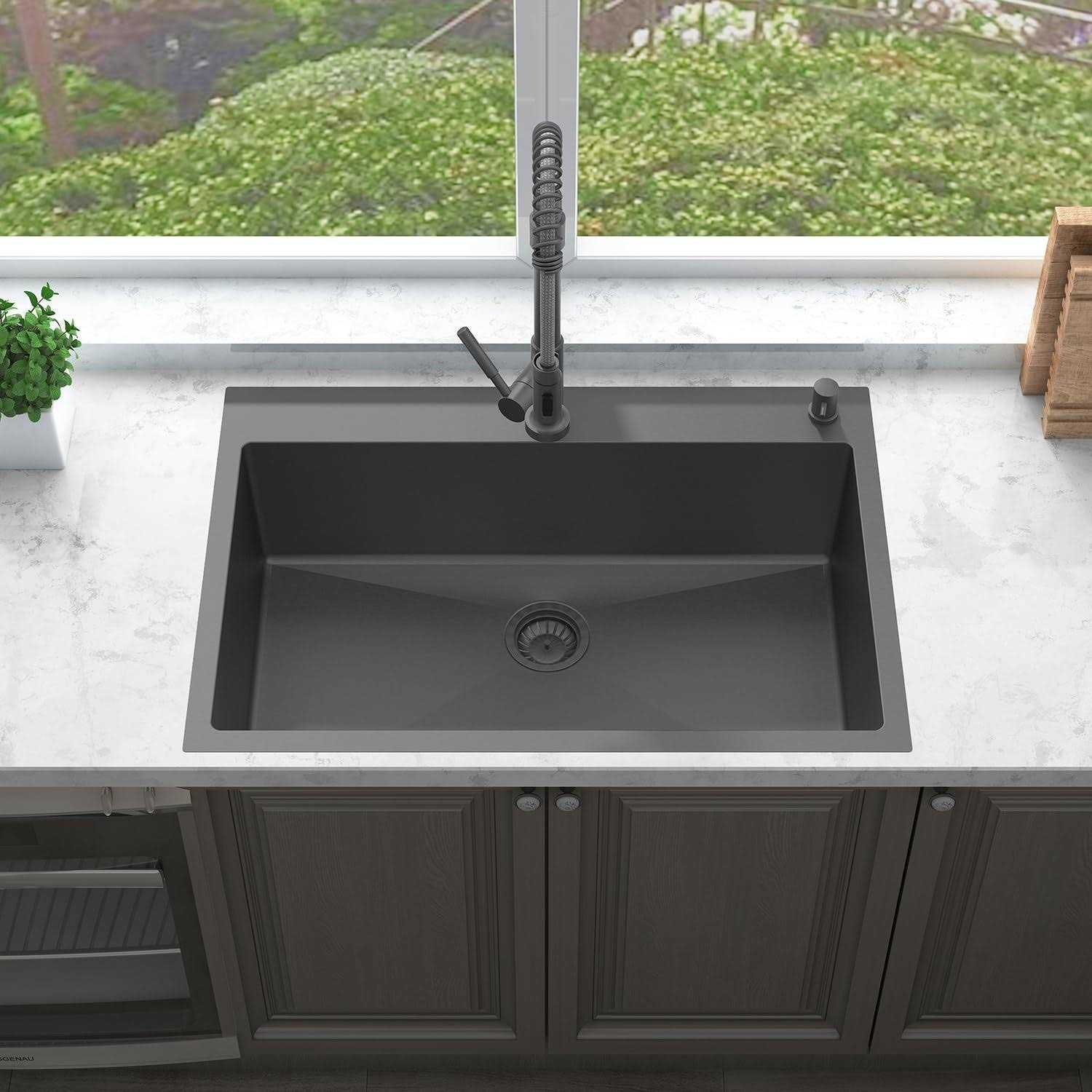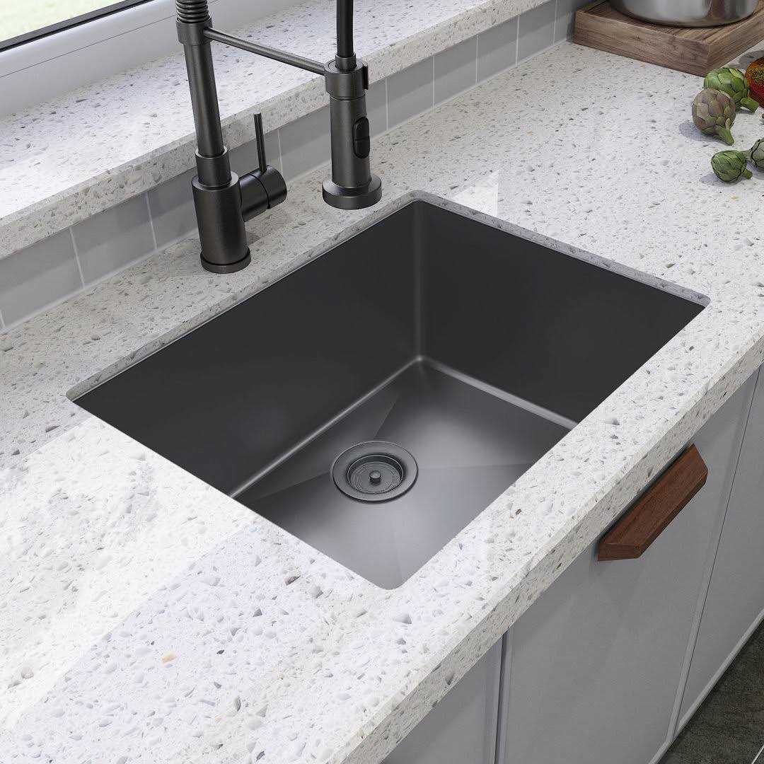 Sinber HU2318S-B-9W 23 x 18 Undermount Single Bowl Kitchen Sink with 18 Gauge 304 Stainless Steel Black Finish