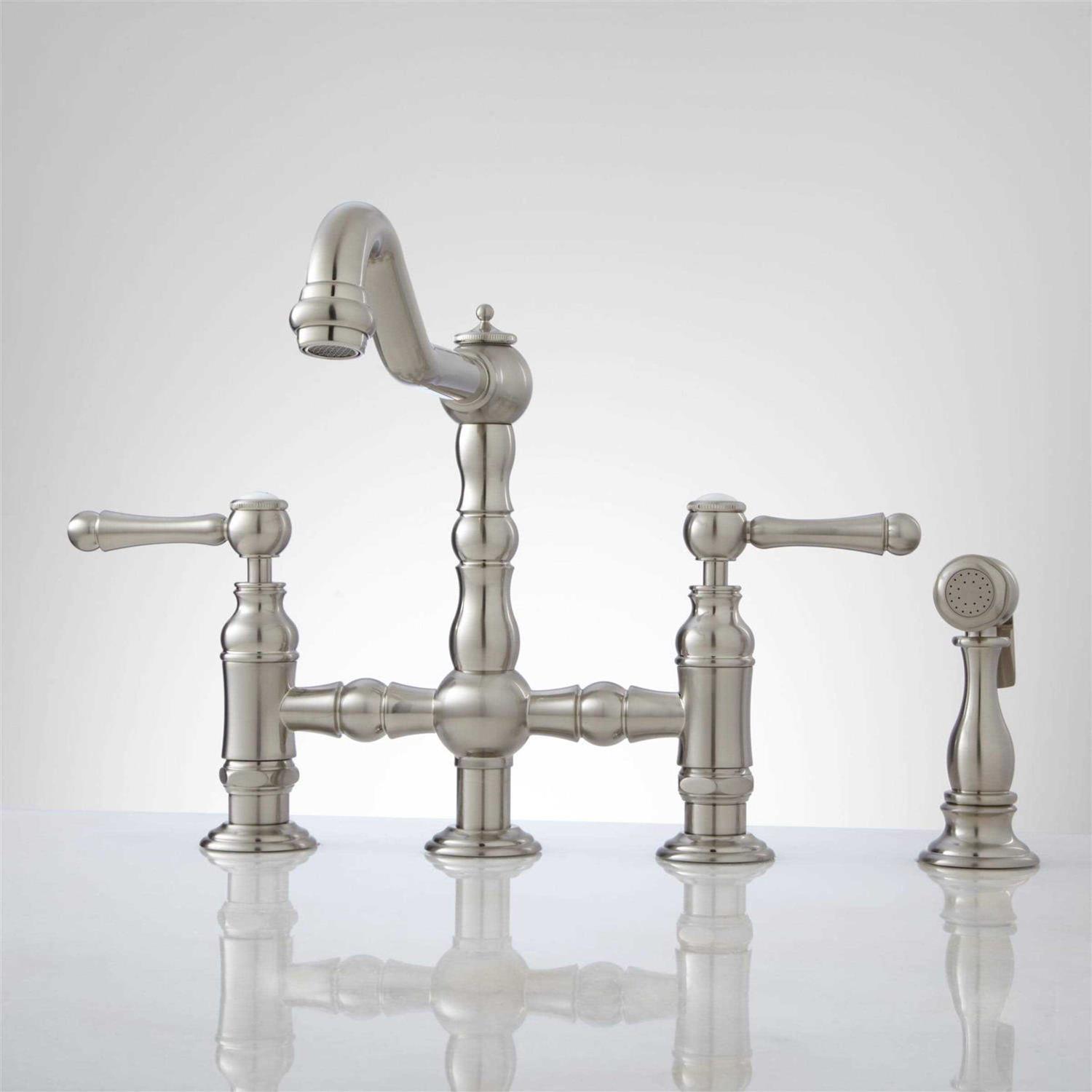 Signature Hardware Delilah 1.8 GPM Bridge Kitchen Faucet with Metal Handles Side Spray
