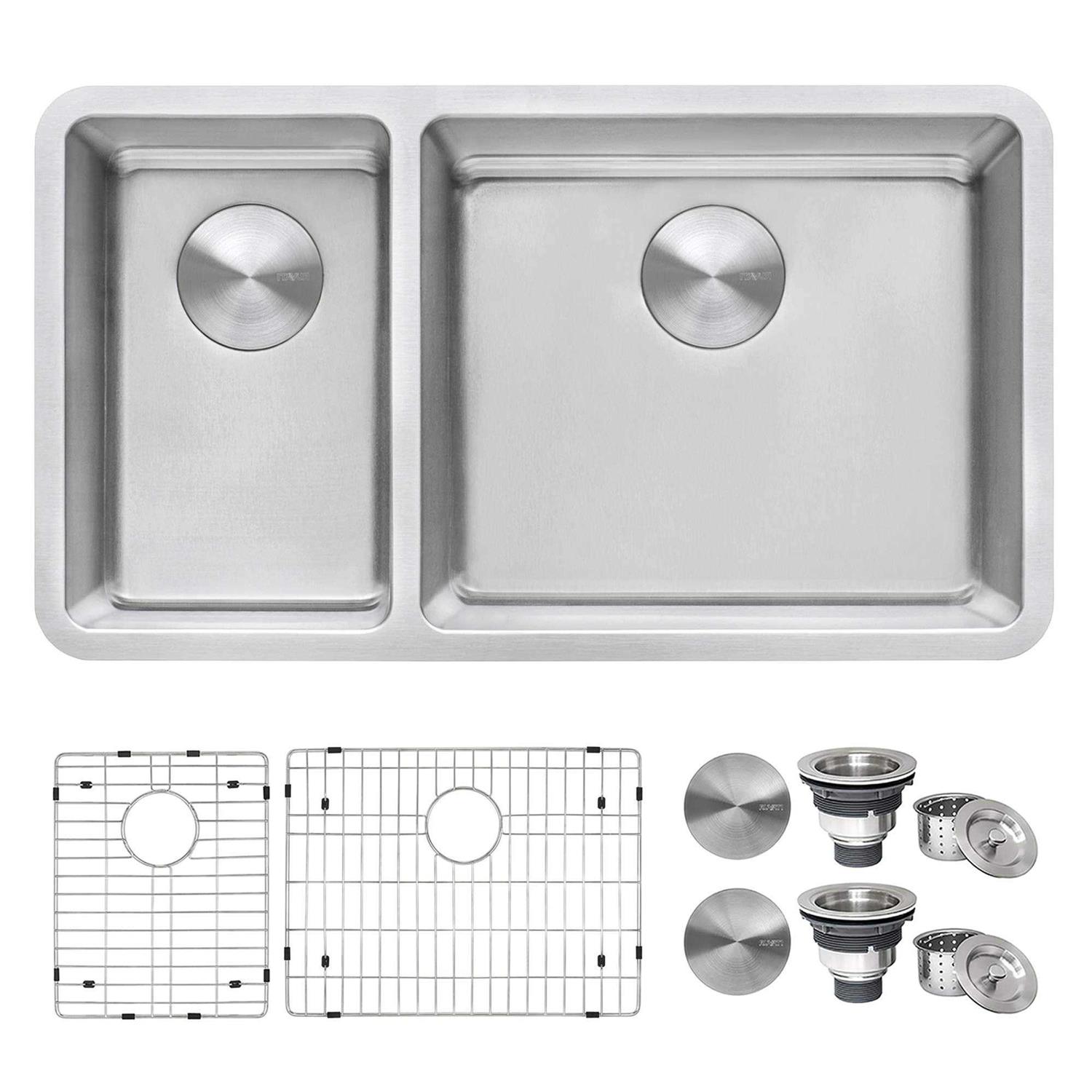 Ruvati 32-inch Undermount Kitchen Sink 70/30 Double Bowl 16 Gauge Stainless Steel RVM5300