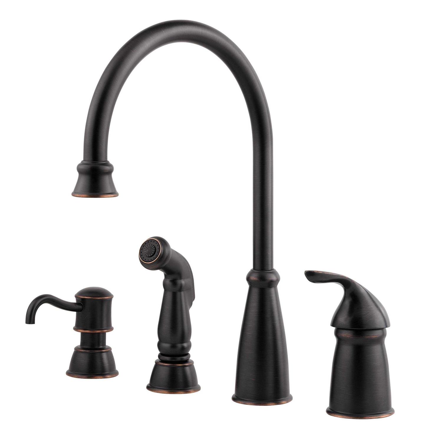 Pfister Avalon Single Handle Kitchen Faucet with Side Spray and Soap Dispenser in Tuscan Bronze GT26-4CBY