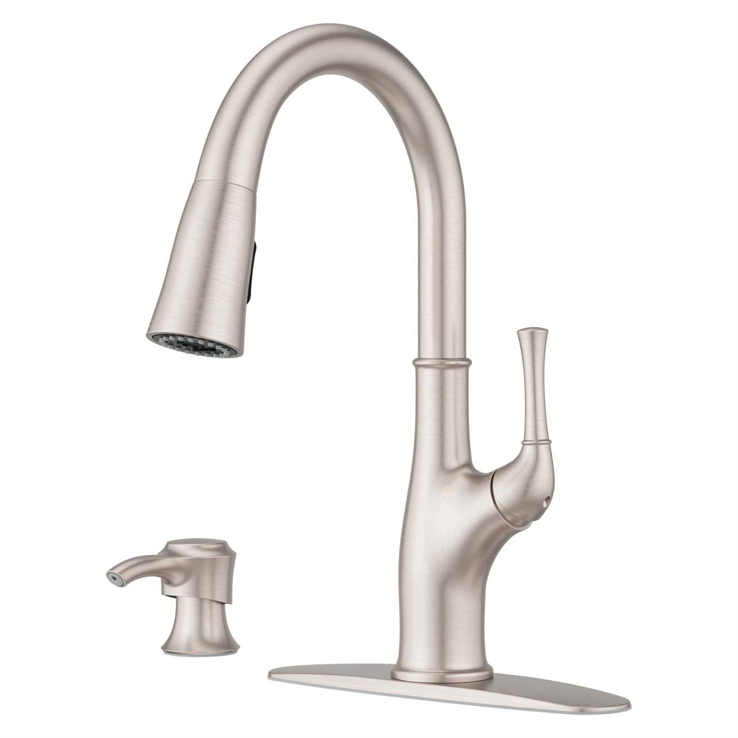 Pfister Alderwood Spot Defense Stainless Steel Single Handle Pull-down Kitchen Faucet with Deck Plate and Soap Dispenser Included F-529-7AWGS
