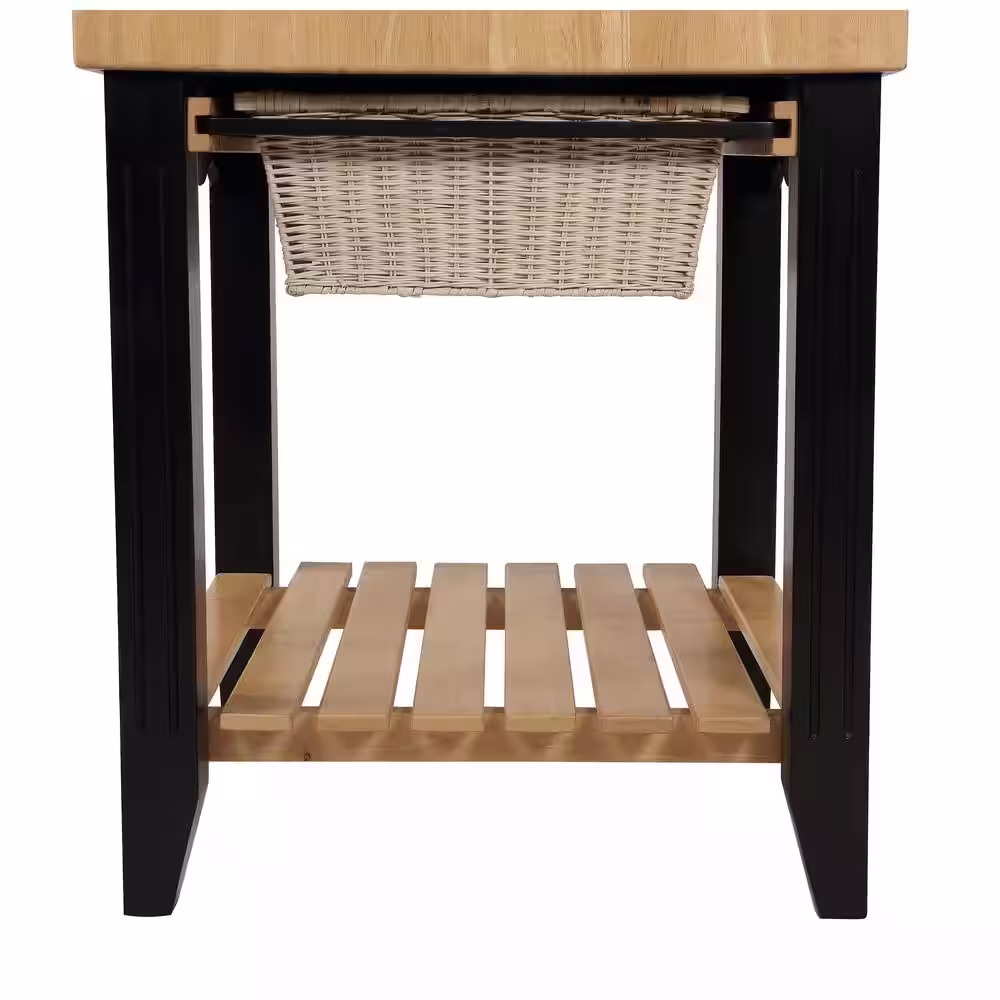 Powell Company Kolton Black Kitchen Island with Butcher Block Style Top and Storage