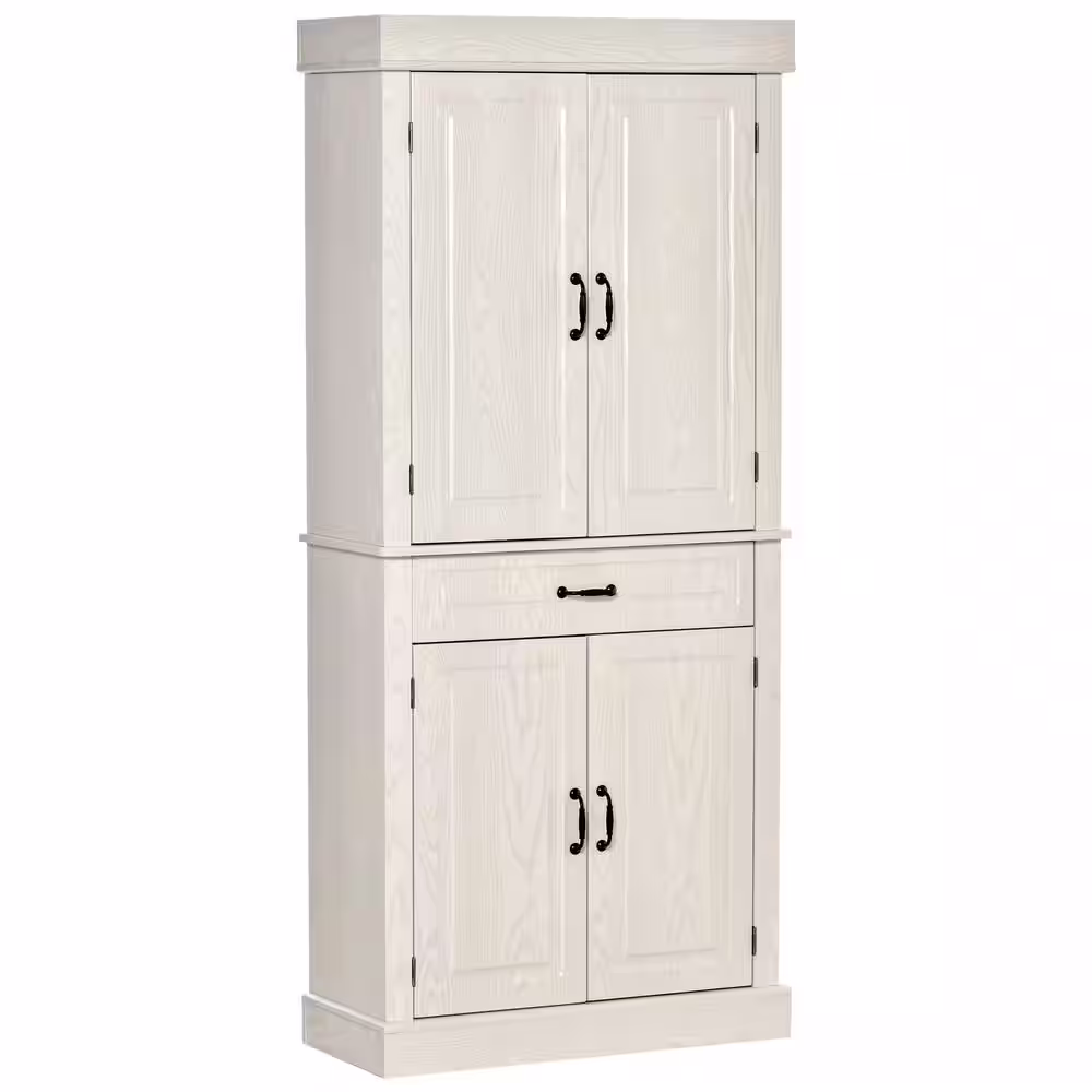 HOMCOM 71 in. White Freestanding Kitchen Pantry with 4-Doors, and 2-Large Cabinets, Tall Storage Cabinet with Wide Drawer