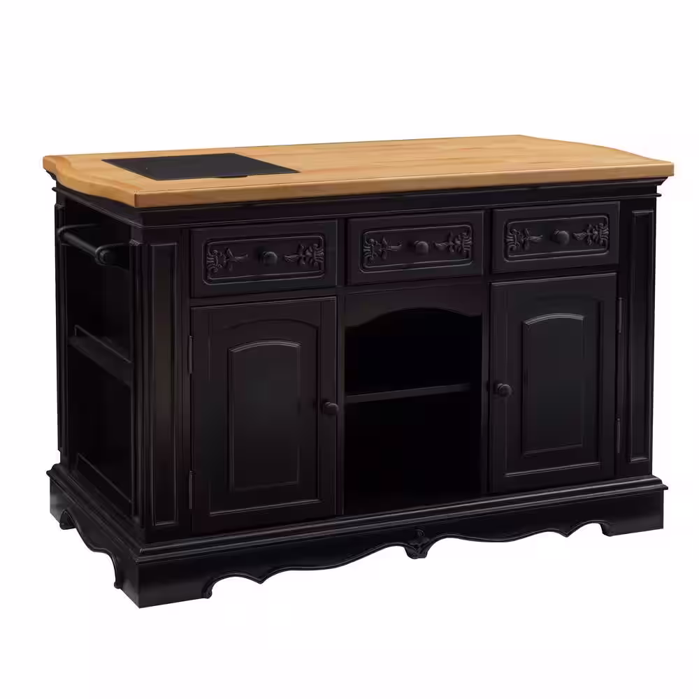 Home Decorators Collection Black Kitchen Island with Natural Butcher Block Top