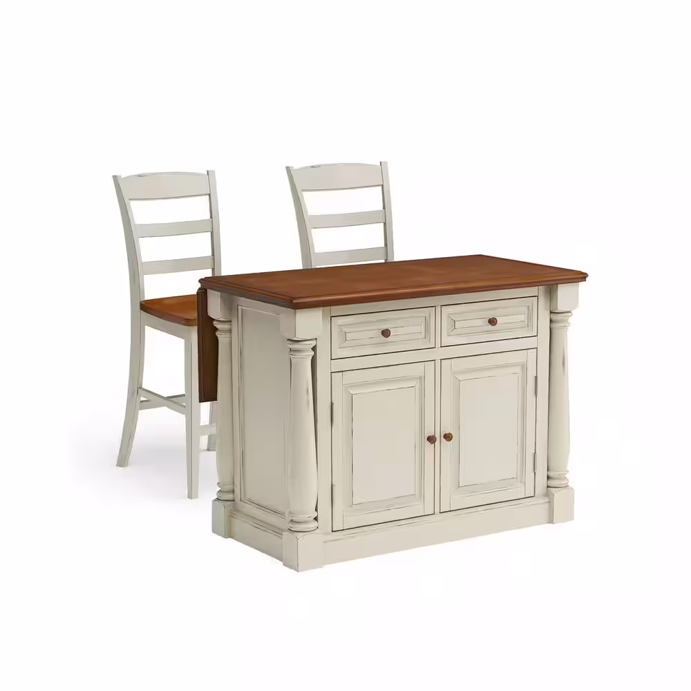 HOMESTYLES Monarch White Kitchen Island With Seating
