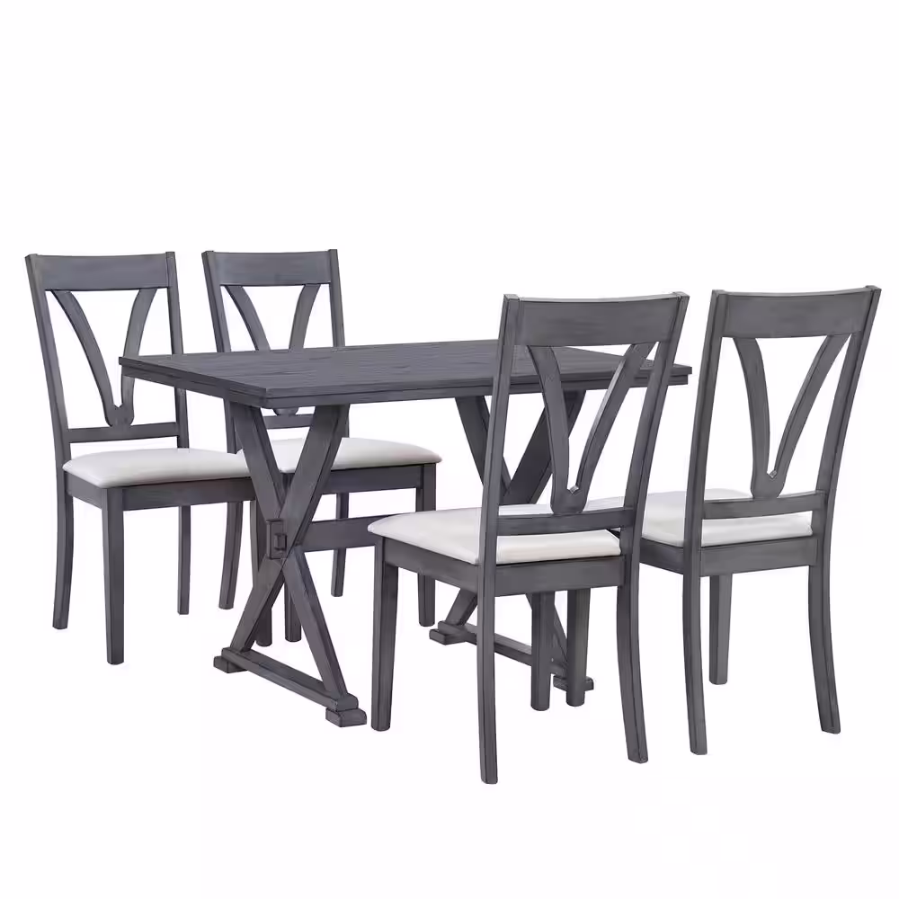 None 5-Piece Grey Wood Top Kitchen Dining Table Set Dining Room Table and 4-Upholstered Chairs
