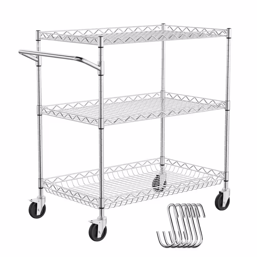 None Kitchen Utility Cart 30 in. Wire Rolling Cart with Wheels Metal Storage Trolley NSF Listed Kitchen Carts,Silver