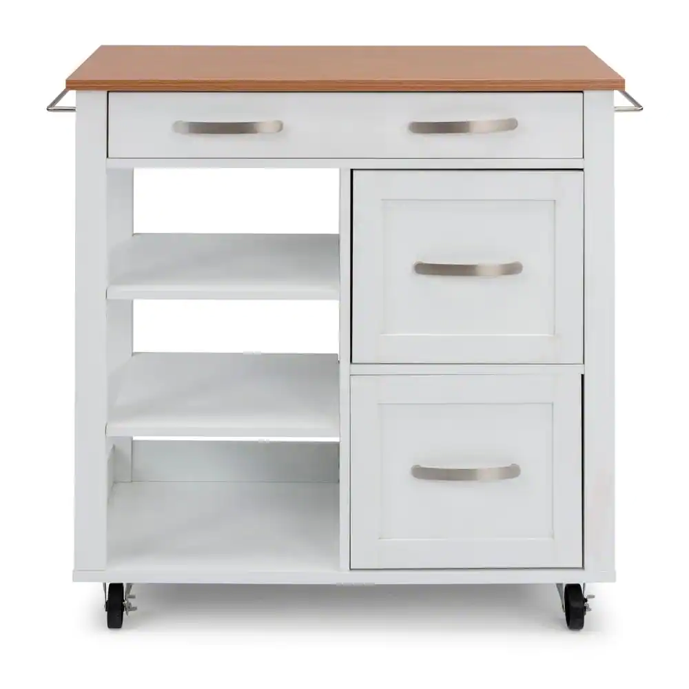 HOMESTYLES Dolly Madison White Kitchen Cart with Natural Wood Top