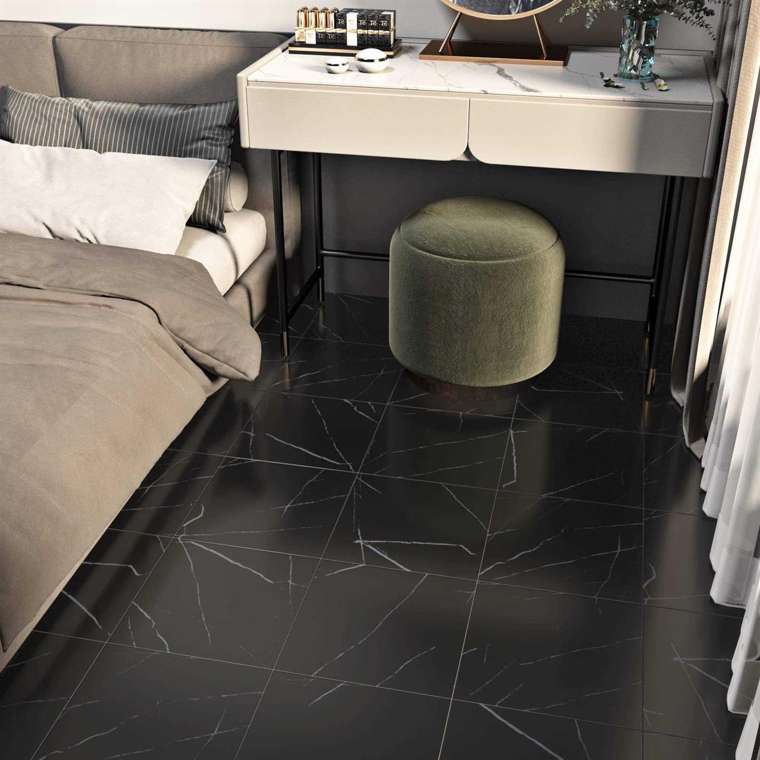 WESTICK Black Vinyl Floor Tile Peel and Stick Flooring Bathroom Floor Tiles Peel and Stick Waterproof Kitchen Self Sticky