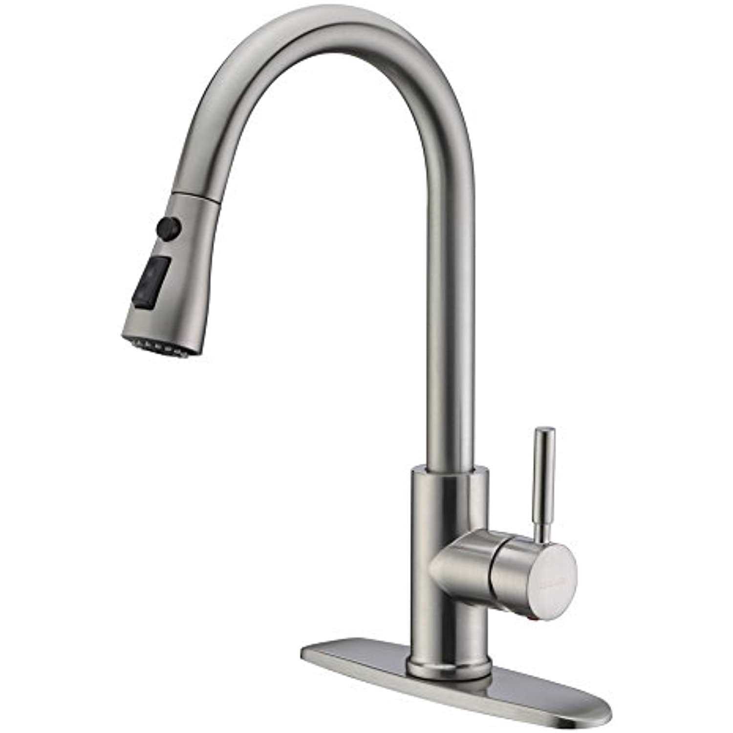 Wewe Single Handle High Arc Brushed Nickel Pull Out Kitchen Faucet,Single Level Stainless Steel Kitchen Sink Faucets with Pull Down Sprayer