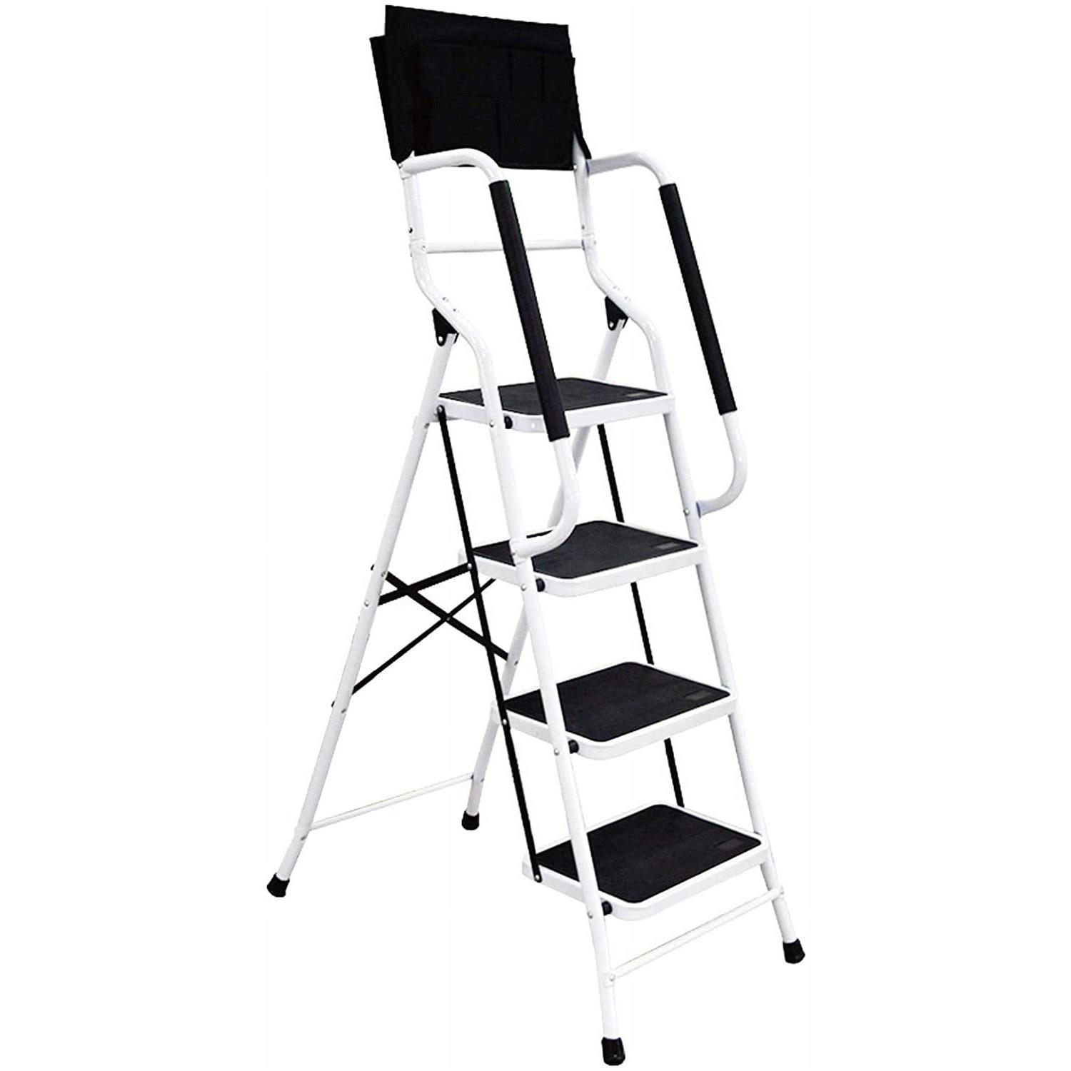 WiberWi 4 Step Ladder with Handrails 500 lb Capacity Step Stool Folding Portable Ladders for Home Kitchen Steel Frame with Non-Slip Wide Pedal