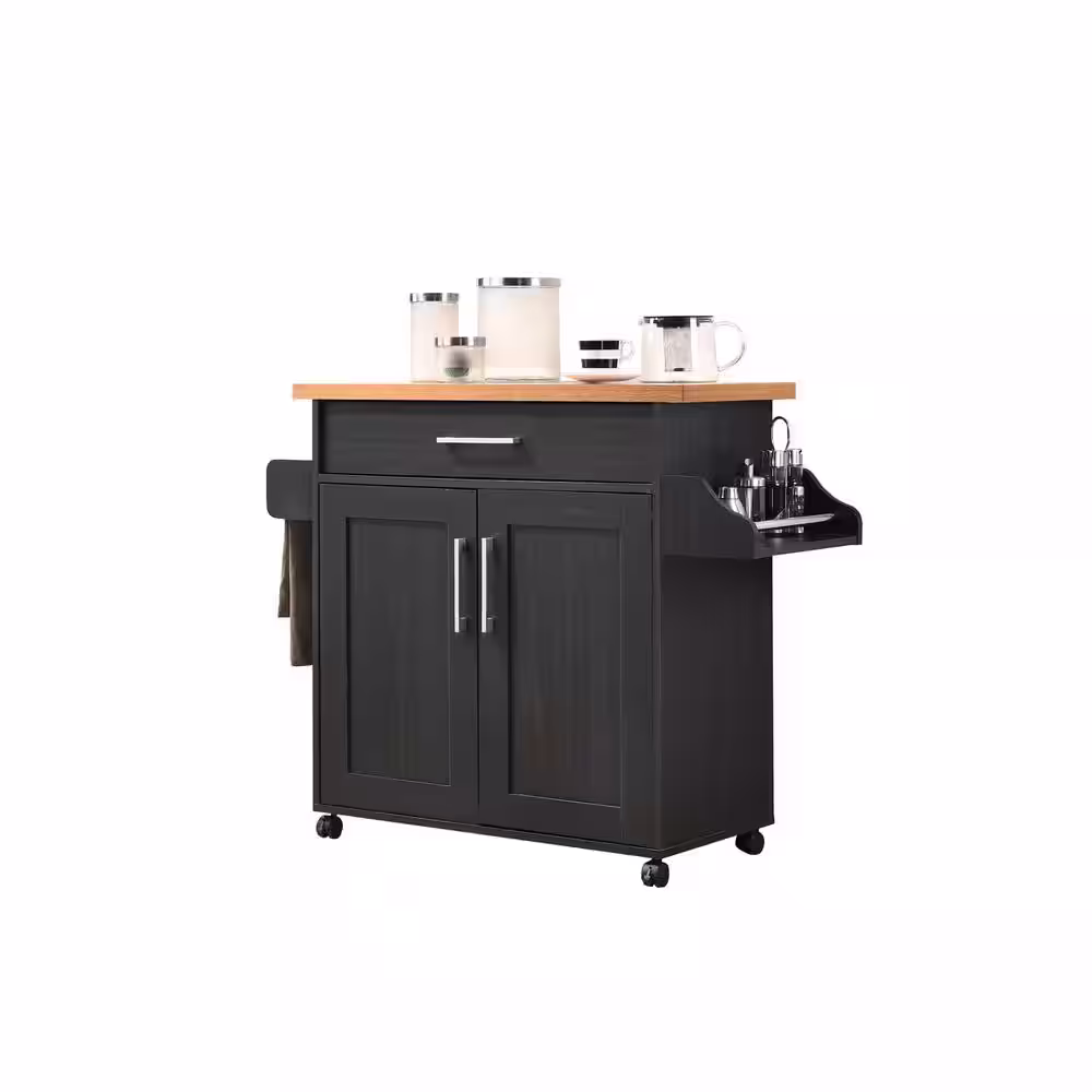 HOMESTYLES Brookshire Black Kitchen Cart with Natural Wood Top