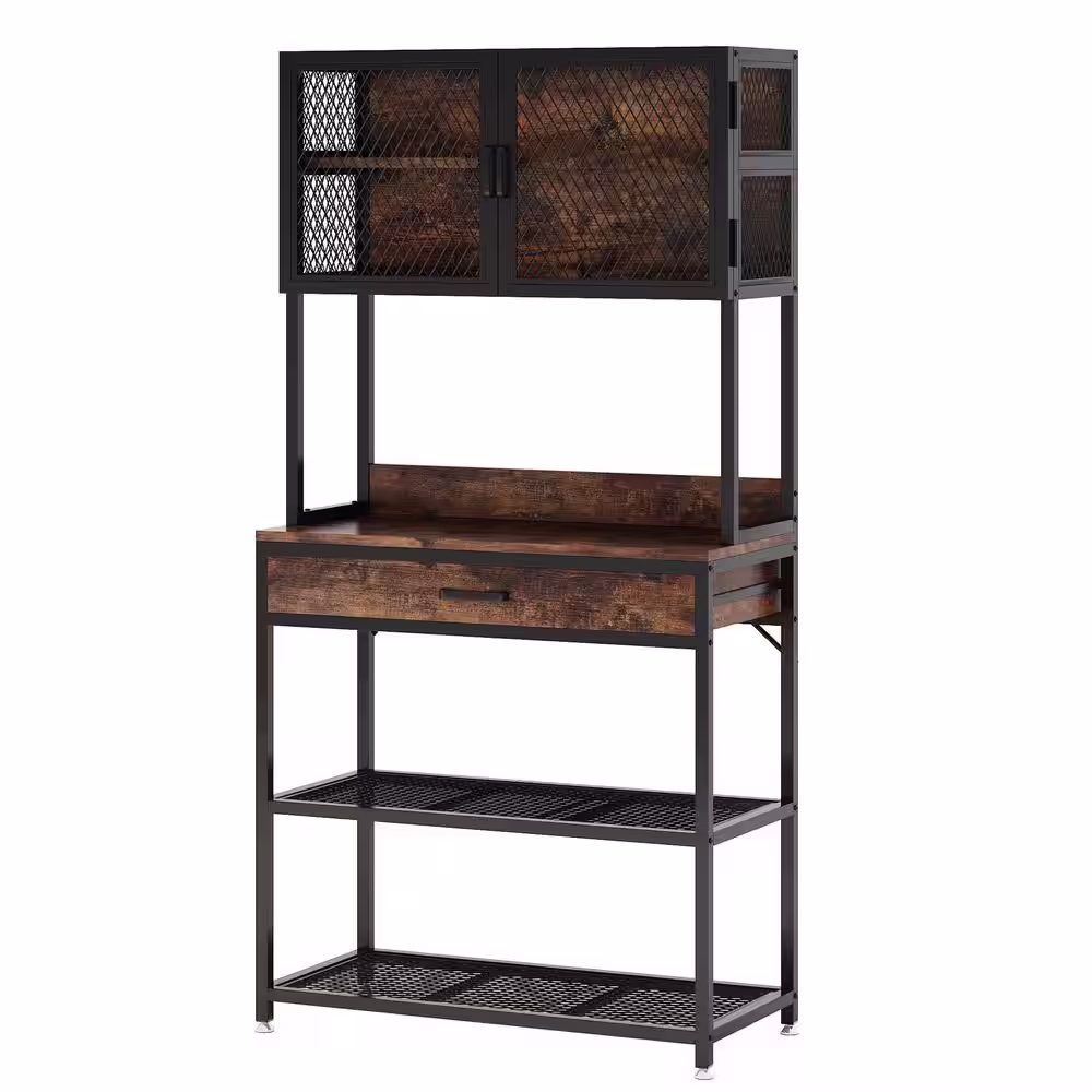 BYBLIGHT Keenyah Brown 6-Tier Kitchen Baker's Racks 1-Drawer and Double Door Cabinet Metal Frame 31.5 in. x 15.7 in. x 66.9 in.