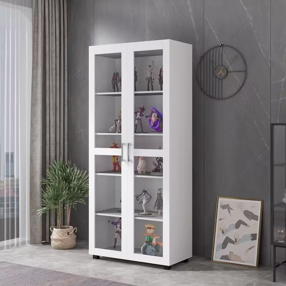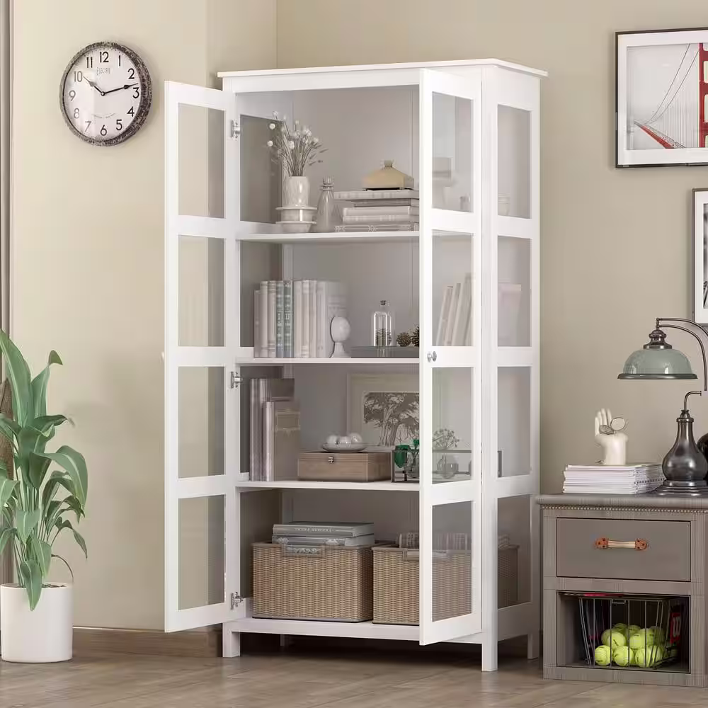 FUFU&GAGA 72 in. H White Wood 2-Door Accent Cabinet with 4-Tier Shelves Kitchen Pantry Cupboard Storage Cabinet