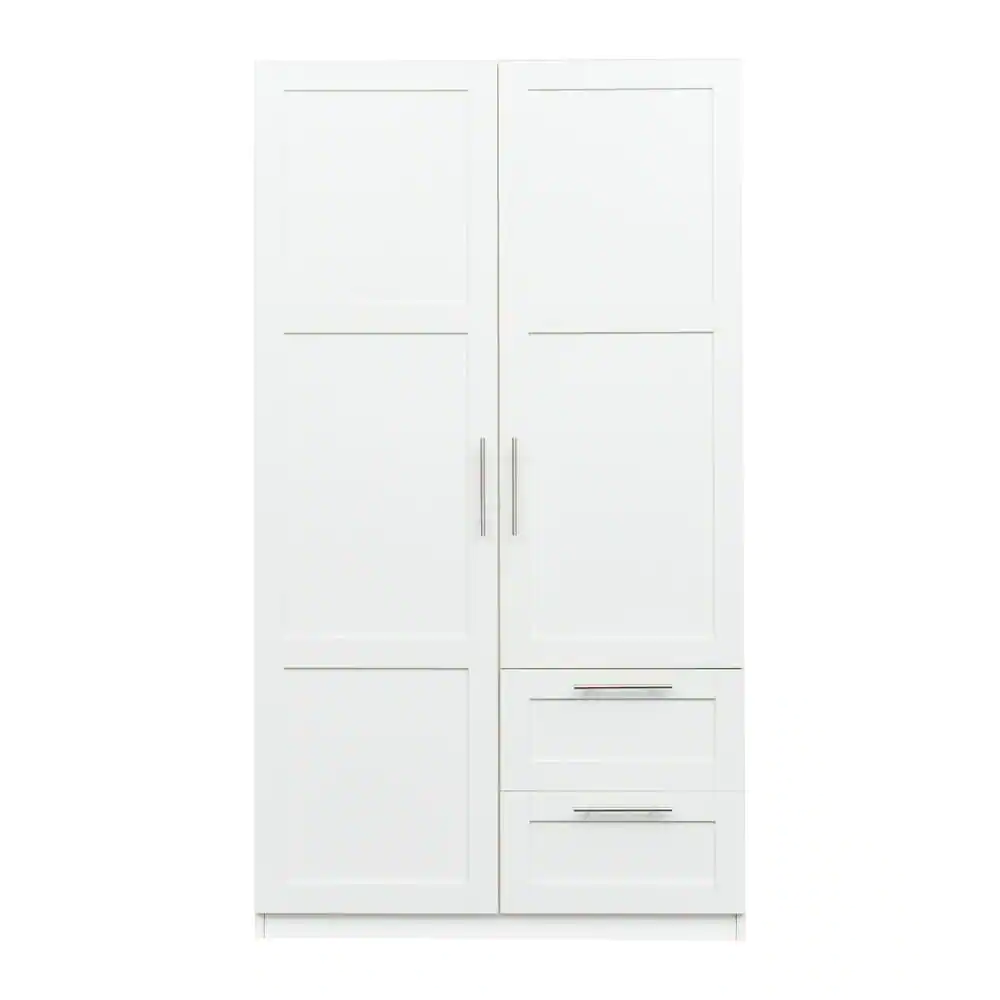 None White High Wardrobe and Kitchen Cabinet with 2 Doors, 2 Drawers and 5 Storage Spaces