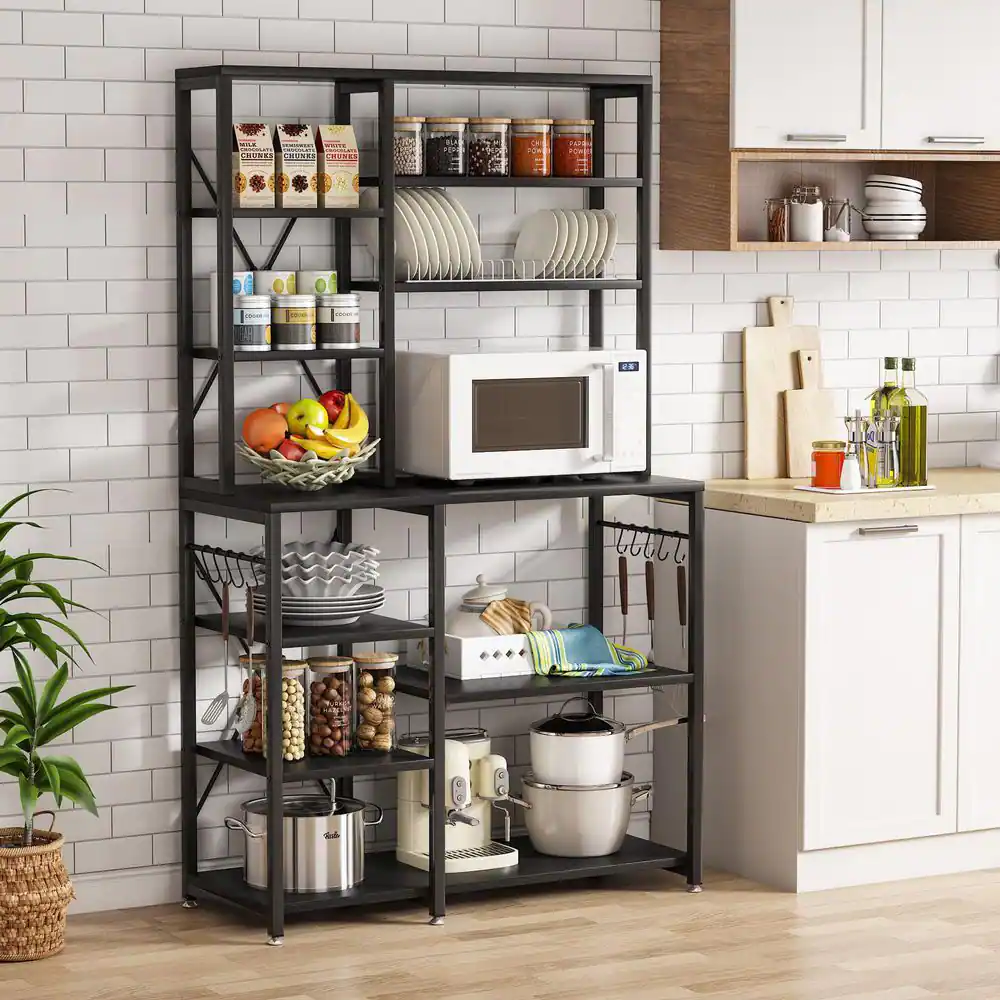 TRIBESIGNS WAY TO ORIGIN Bachel Black Kitchen Baker's Rack with Hutch and 10-S-Shaped Hooks