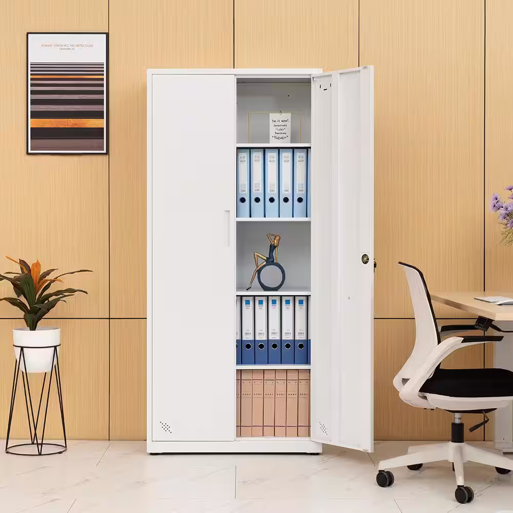 None White Metal Storage Cabinet with 2-Doors and 4 Shelves, Lockable Tall Cabinet for Home Office Garage Kitchen Pantry