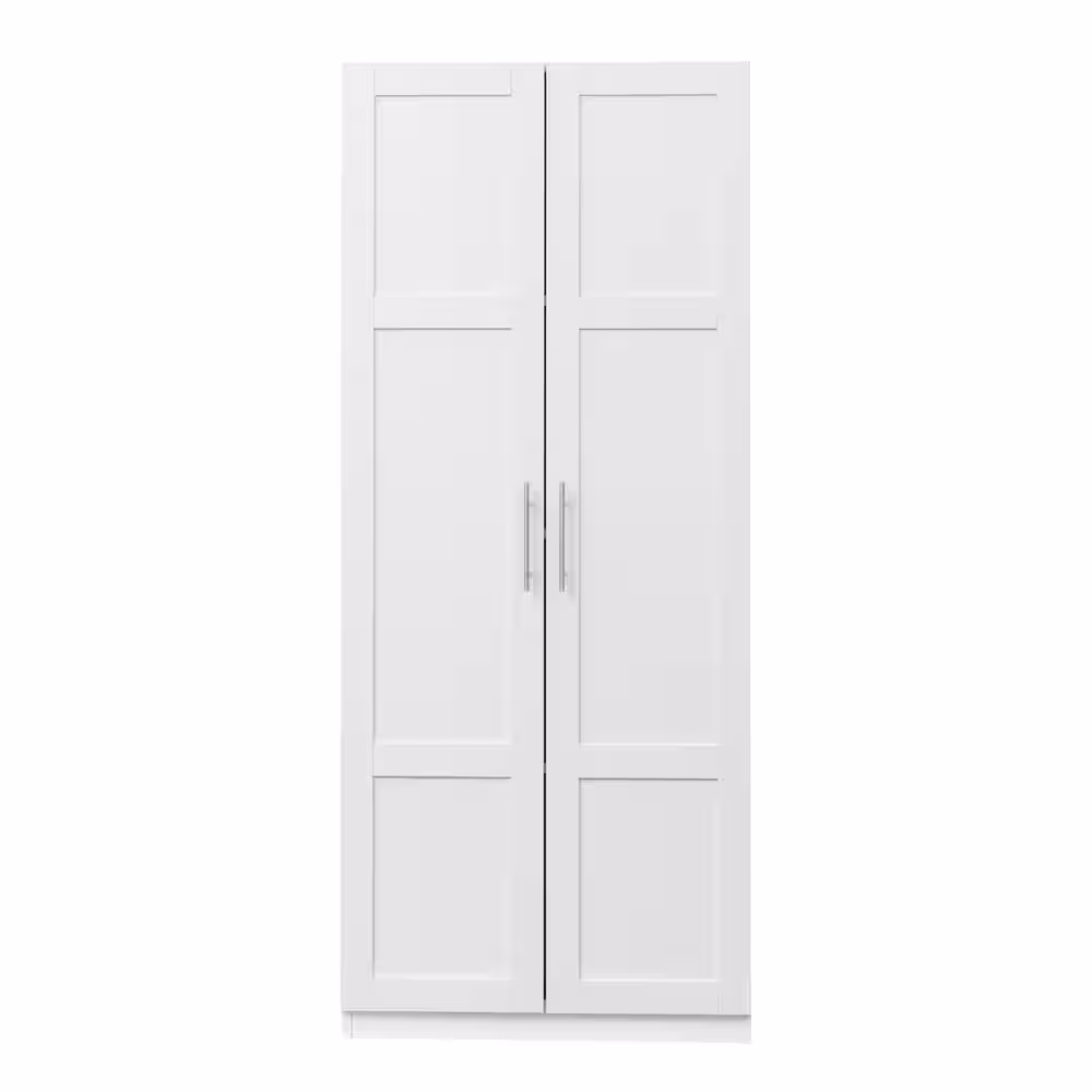 ATHMILE White High Wardrobe and Kitchen Cabinet with 2-Doors and 3-Partitions