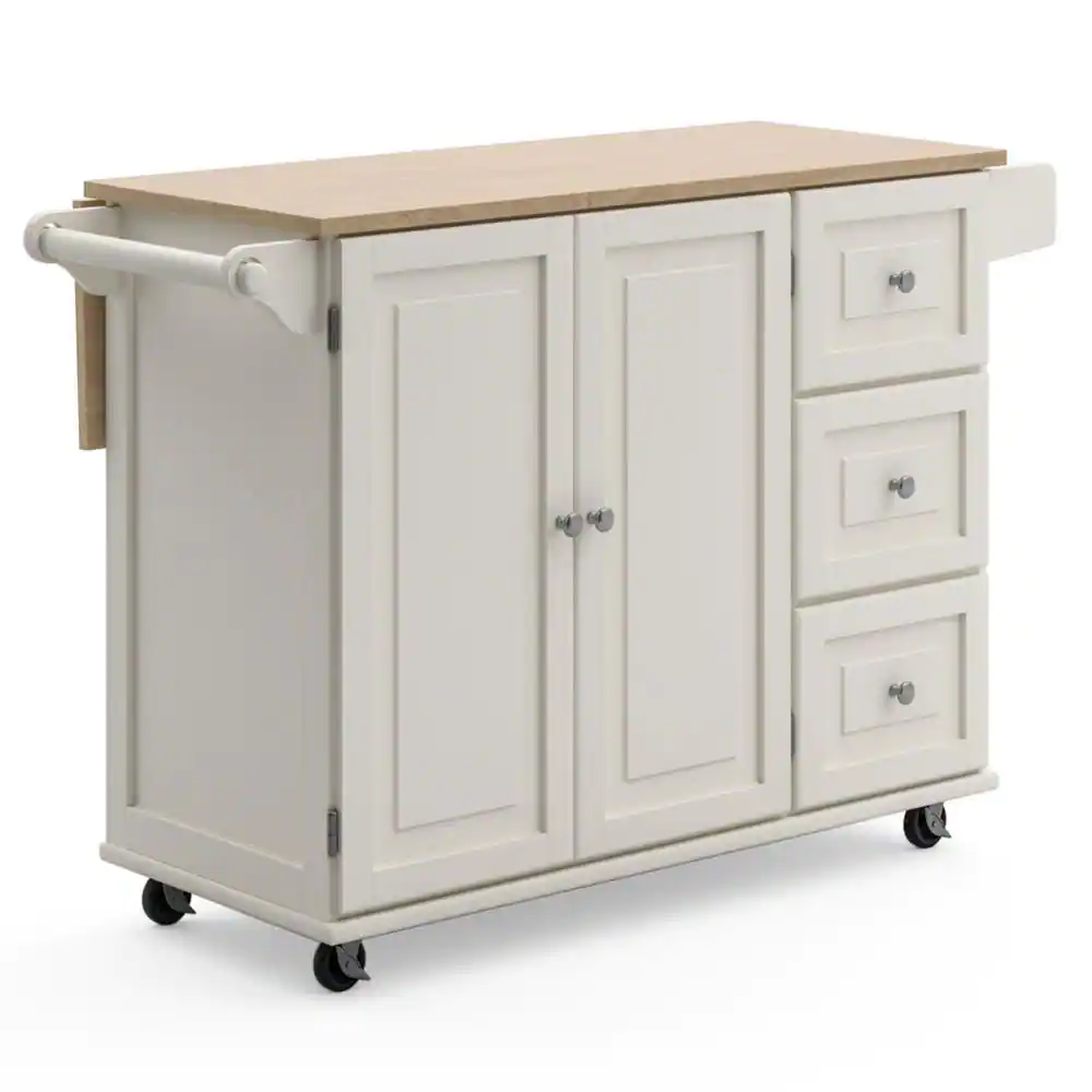 HOMESTYLES Dolly Madison White Kitchen Cart with Natural Wood Top