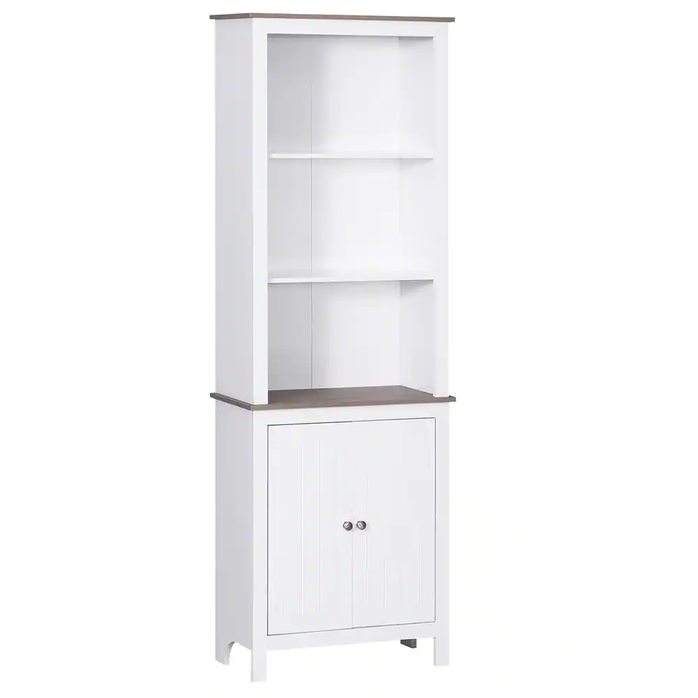 HOMCOM White Storage Cabinet, Bathroom Linen Tower, Kitchen Cupboard, Cabinet, Bookcase with Double Door 3-Tier Shelf