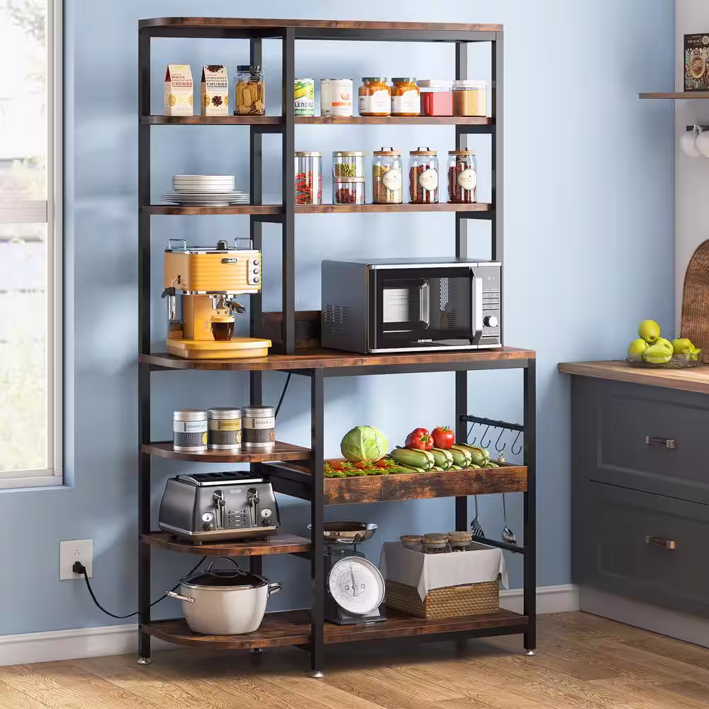 None Keenyah Brown 10-Tier Kitchen Baker's Racks with Power Outlets, Microwave Oven Stand with Storage