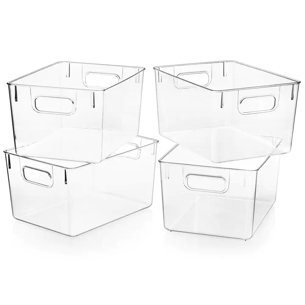None 9 qt. Plastic Storage Bin Kitchen Organization in Clear (4-Pack)