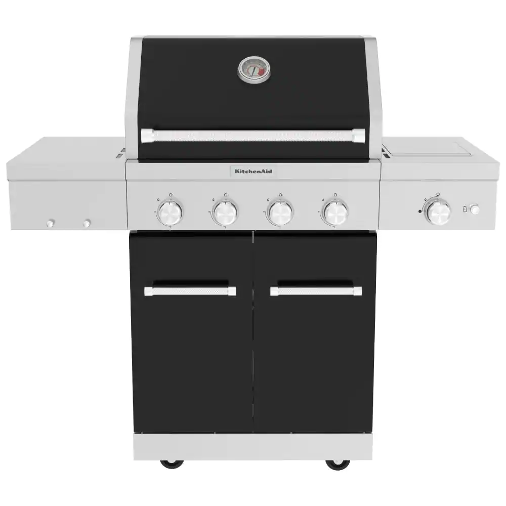 KitchenAid 4-Burner Propane Gas Grill with Searing Side Burner in Black