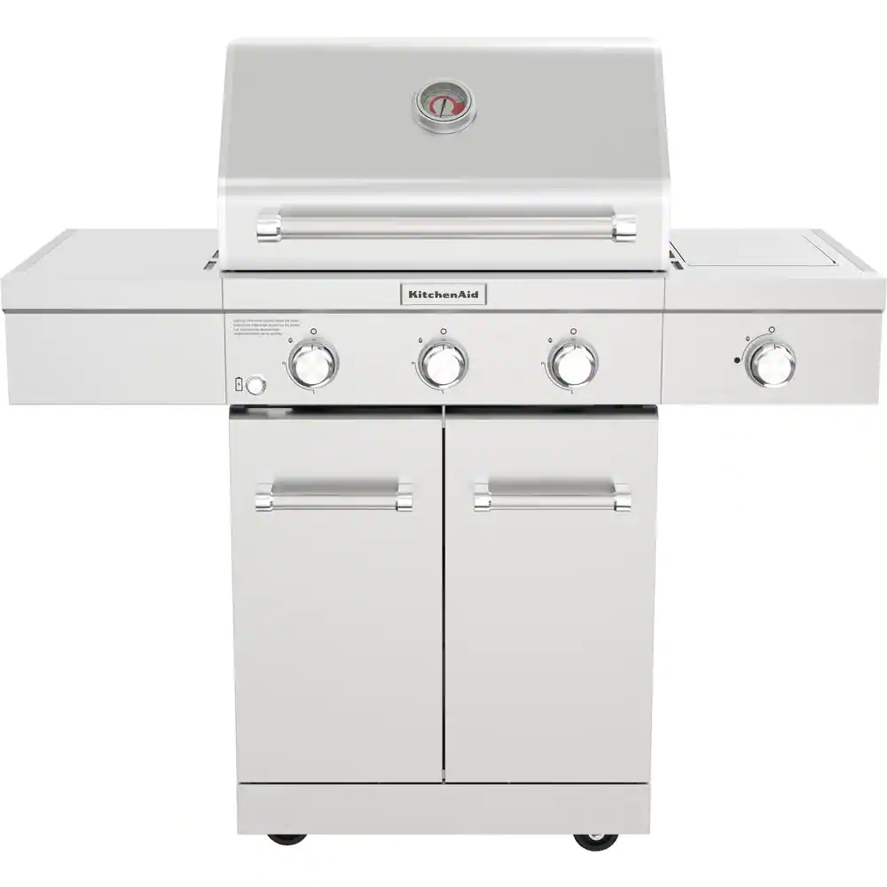 KitchenAid 3-Burner Propane Gas Grill in Stainless Steel with Ceramic Sear Side Burner