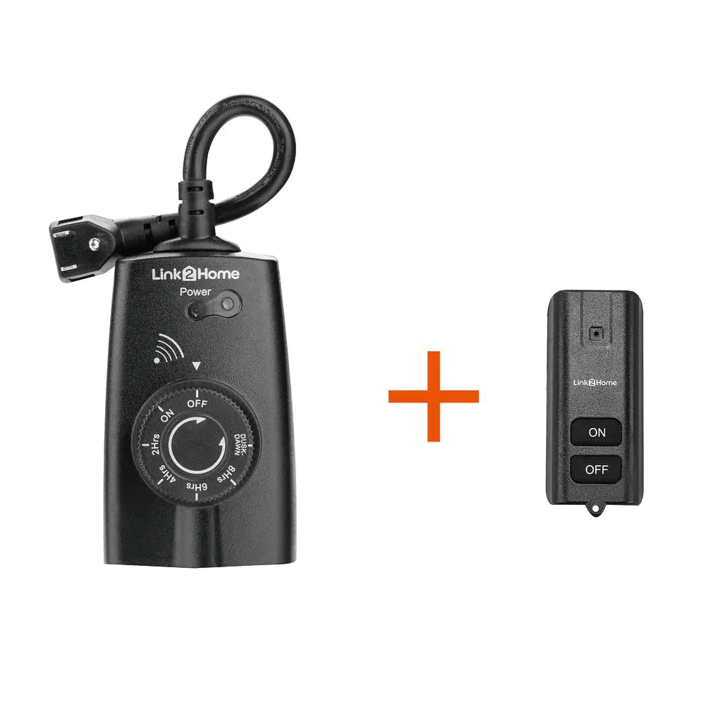 Link2Home 15 Amp Outdoor Plug-In Mechanical Dusk to Dawn Countdown Timer with 2 Grounded Outlets and 1 Remote, Black