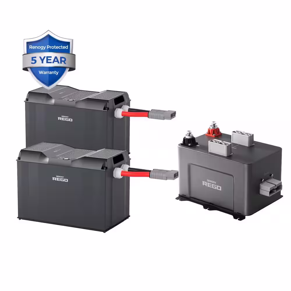 Renogy 2PCS REGO 12V 400Ah Lithium Deep Cycle Battery w/1PCS REGO 3 Port 400A Battery Combiner Box, Backup Power for RV Outdoor