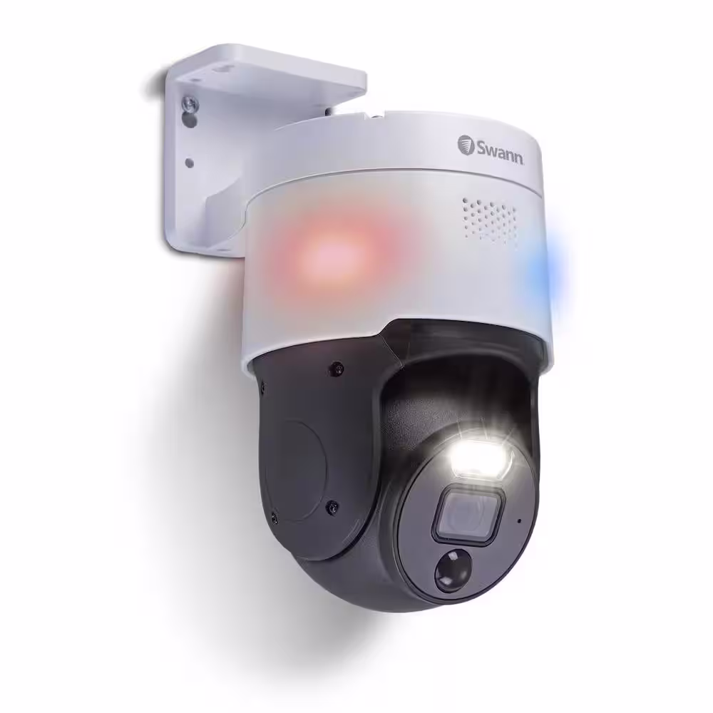 Swann 4K ProForcer Indoor/Outdoor White Hardwired PT PoE Cat5 NVR Home Security Camera with FREE Analytics and 2-Way Audio