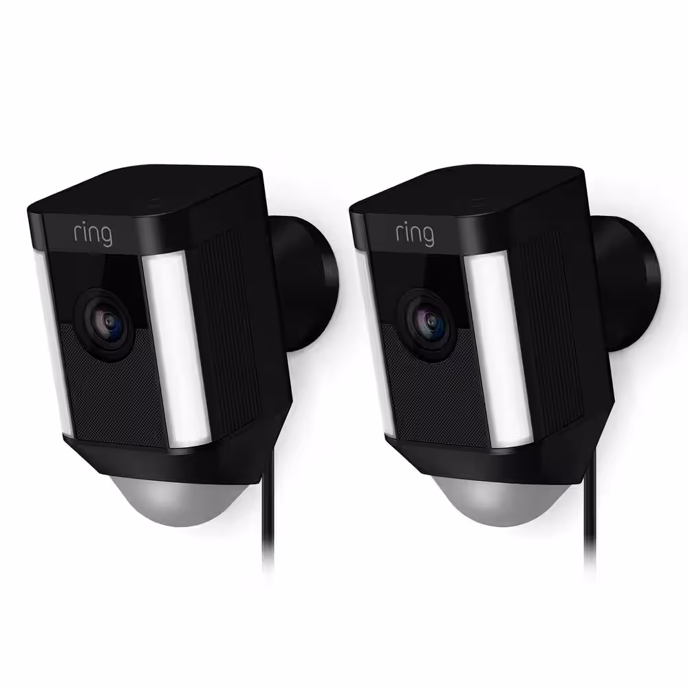 Ring Spotlight Cam Wired Outdoor Rectangle Security Camera, Black (2-Pack)
