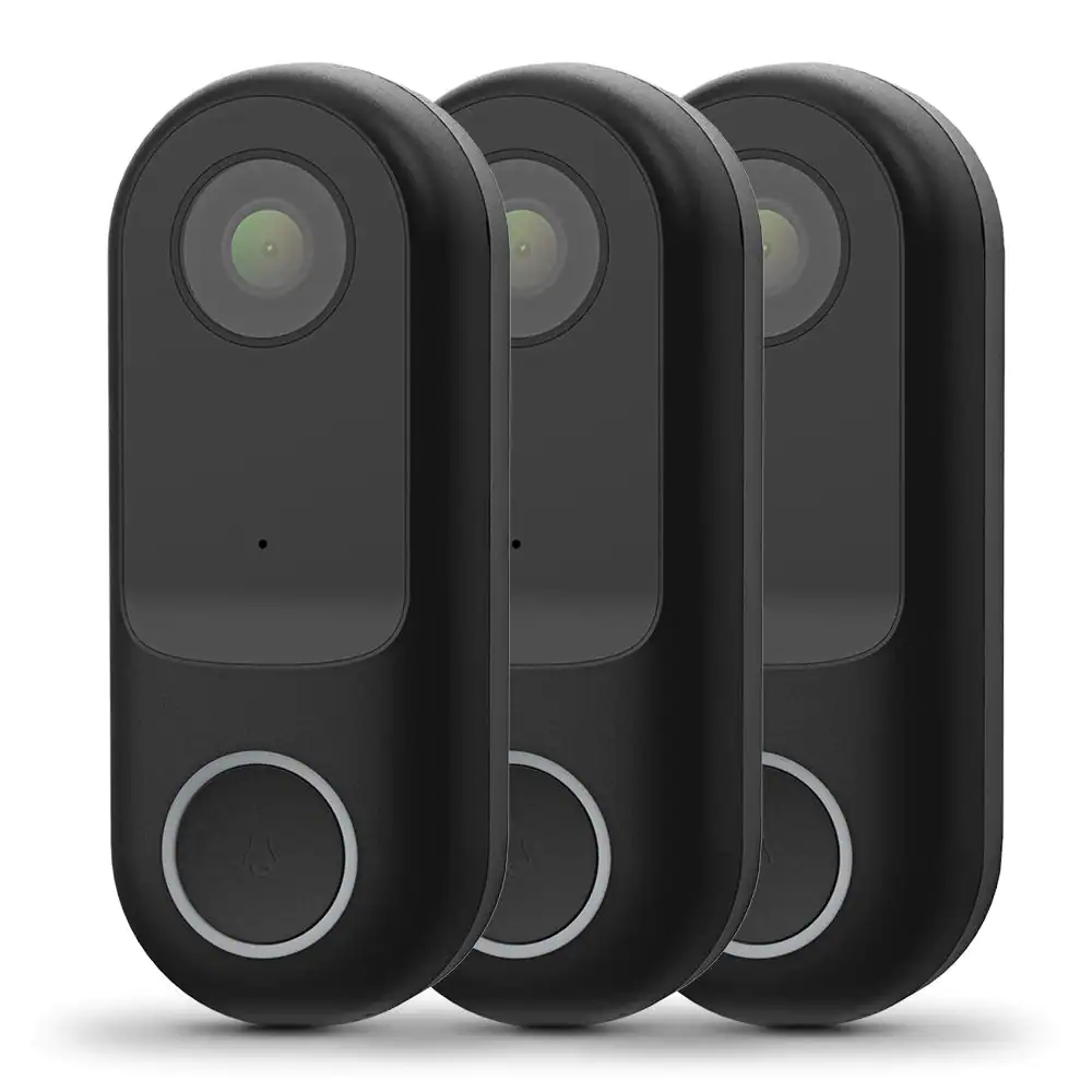 Feit Electric HD 1080P Hardwired Wi-Fi Smart Outdoor Black Doorbell Surveillance Home Security Camera Motion Sound Detection (3-Pack)