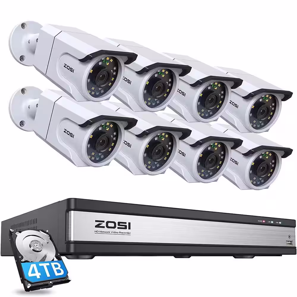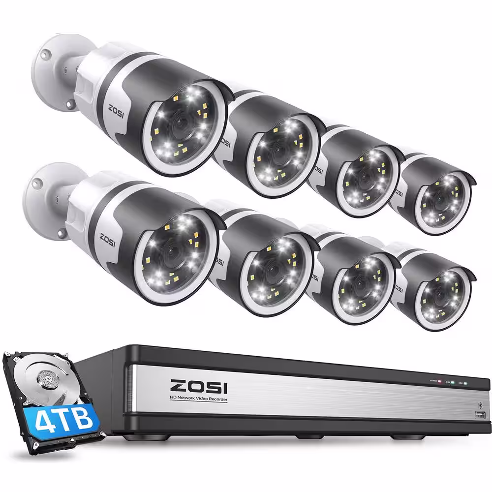 ZOSI 4K Ultra HD 16-Channel 4TB NVR POE Security Camera System with 8-Wired 8MP Outdoor Audio Surveillance Cameras