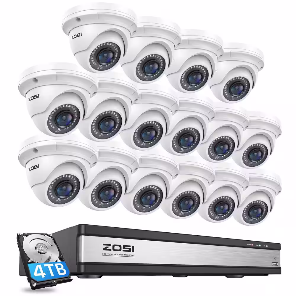 ZOSI 4K UHD 16-Channel POE NVR Security Camera System with 4TB HDD and 16 Wired 5MP Outdoor IP Dome Cameras